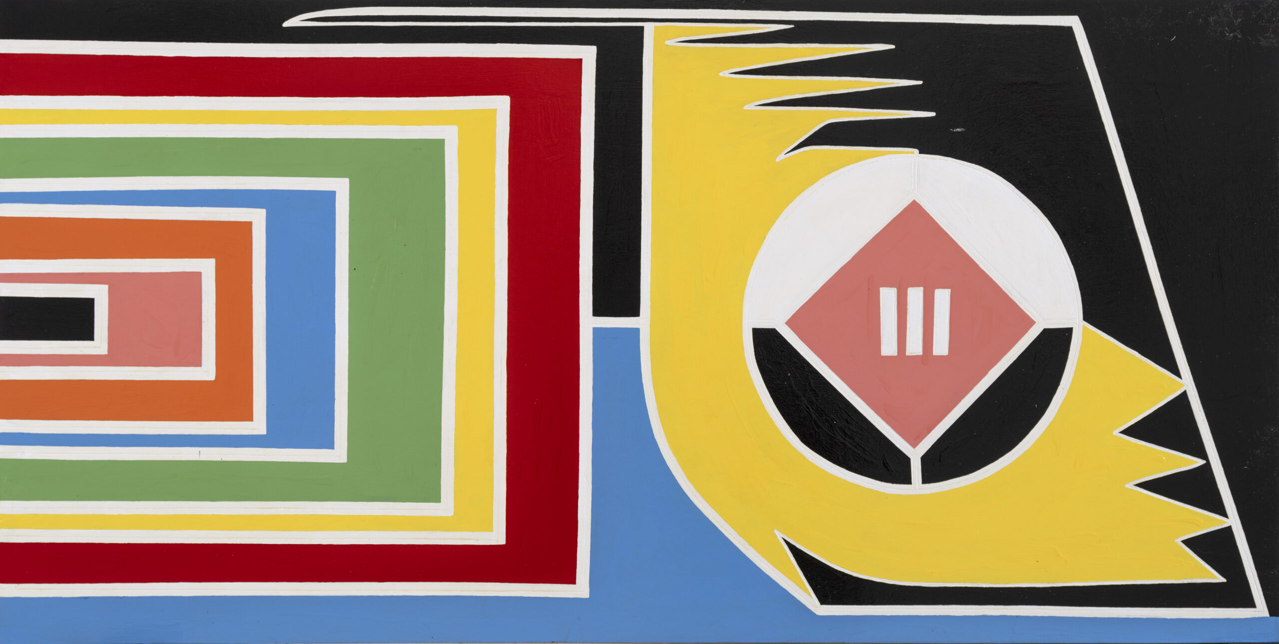 His interests in the theatre of sport, historical conflict and cultural survival are woven into images that include new figurative references. The work is grounded by Arebaa / Sun and Moon, its cyclical, symbolic, tribal and individual meanings.