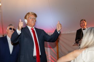 And now it’s Trump that he rolls out when required. The first we heard of this was when Trump (that is, Haddan) turned up at Brisbane stockbroker Steve Wilson’s 70th birthday bash, complete with a bandaged ear, illustrating that assassination attempt.