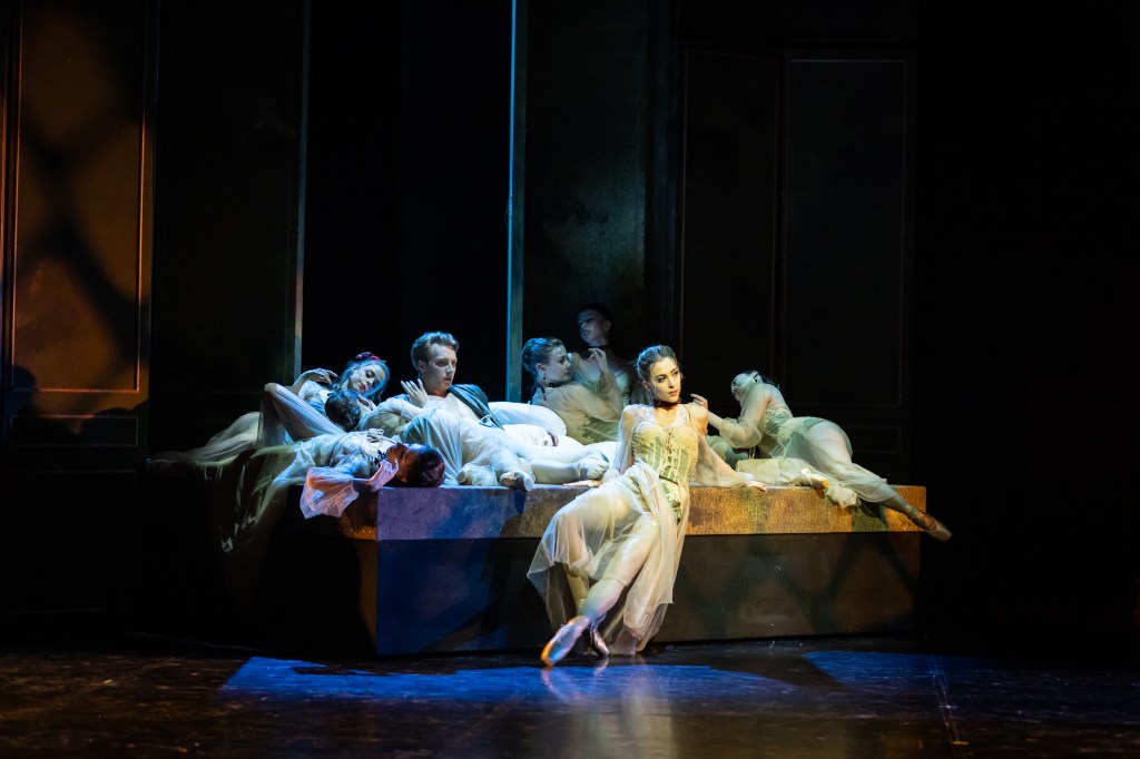 It takes on a chamber opera atmosphere befitting the story’s cloistered intrigues. The theatre’s intimate viewpoint enables patrons to zoom in on facial detail and physical expression, ramping up intensity, while distancing some staging gives the dancers the freedom to perform more graphic movement fearlessly.