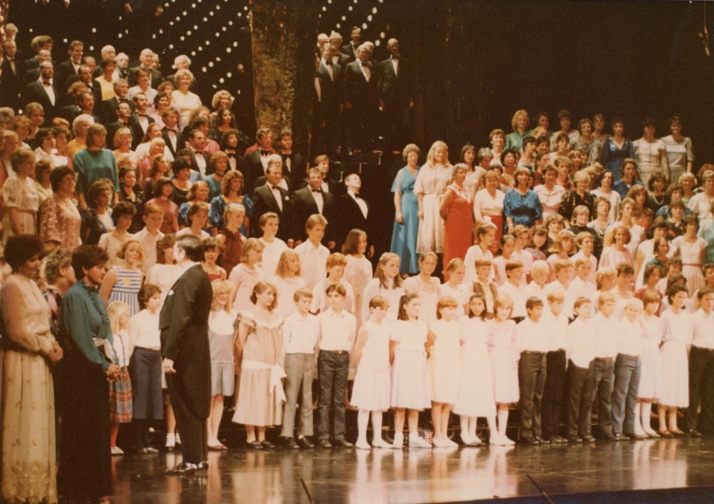 “On stage was the largest choir ever amassed, 340 singers-plus Queensland Symphony Orchestra, Queensland Theatre Orchestra, three stage bands, soloist Noel Mangin and Queensland Ballet dancers,” recalls Baldwin. “It was a mammoth undertaking. In one scene alone, there were four separate choruses – the choir of the heavenly host, a children’s choir portraying heavenly cherubs, a female chorus of earthly penitents and mystic chorus.”