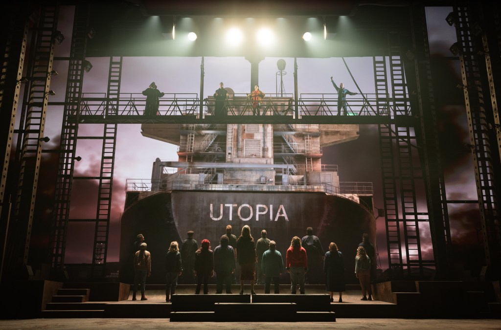 It’s an amazing, original show and a huge production. It looks spectacular, in a shipyard kind of way. When the curtain went up, I felt like I was about to watch an episode of Megastructures. I happen to love that, so I was happy with the industrial landscape and that towering ship that dominates the stage like some kind of giant latent whale.