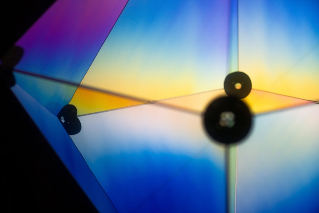 Three major new works have been created for the exhibition. As well as Presence 2025, the polarisation works Your negotiable vulnerability seen from two perspectives 2025 and Your Truths 2025 warp colour and shape to focus our attention on perception itself.