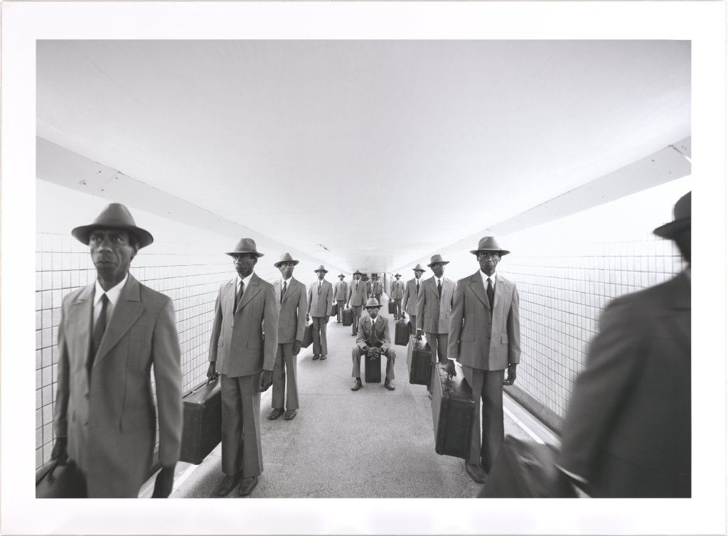The range of works includes photography including Queenslander Michael Cook’s classic Majority Rule (Tunnel), 2014, which reimagines Brisbane with a majority Indigenous population. The image uses the pedestrian tunnel to Central Station in case it looks familiar.