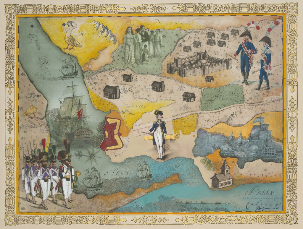 Following an introduction that centres Indigenous knowledge and diverse artistic languages, the exhibition’s first section, Re-Visioning History, will include Pala Pothupitiye’s Kalutara Fort (2020–21), a reimagined map of Sri Lanka’s historic military camp, initially built by Portuguese occupiers, later captured by Dutch settlers and ultimately surrendered to British colonial powers.