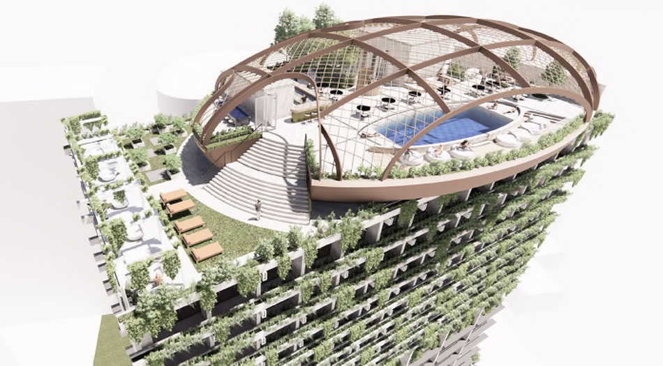 Its signature feature is a rooftop “nest” pergola that will sit above the complex’s pool and recreation area and slightly overhang the edge of the tower.
