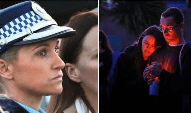 Inspector Amy Scott put on a brave face as she joined the community at a candlelight vigil at Bondi Beach as night fell on Sunday.