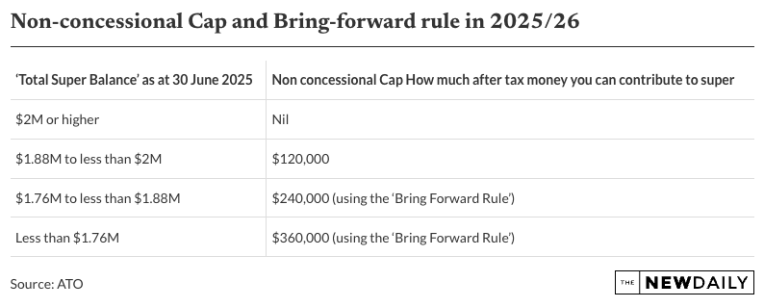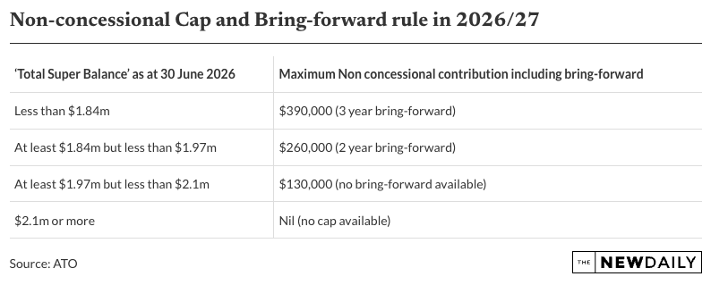 Note, the total super balance threshold and superannuation contribution caps (including the bring forward amount) will be indexed for 2026-27.