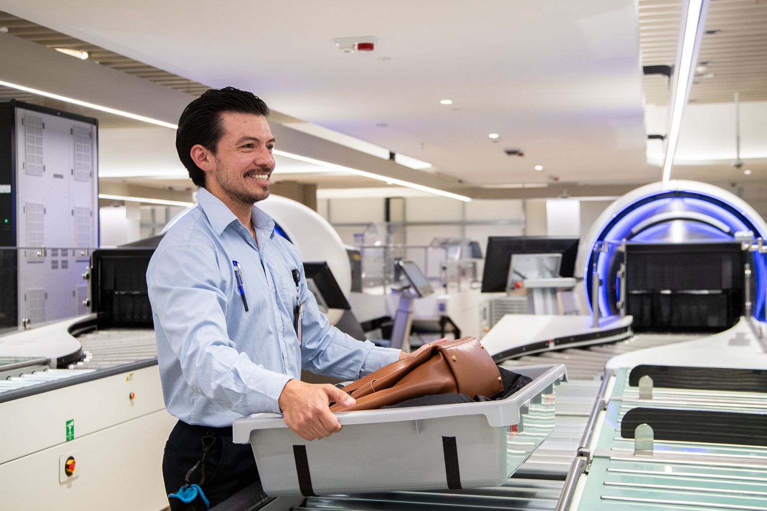 Also referred to as Standard 3, this technology was meant to enable smoother screening by allowing laptops and aerosols to remain inside bags. The screening point also features larger tubs for personal items and automatic tray return.