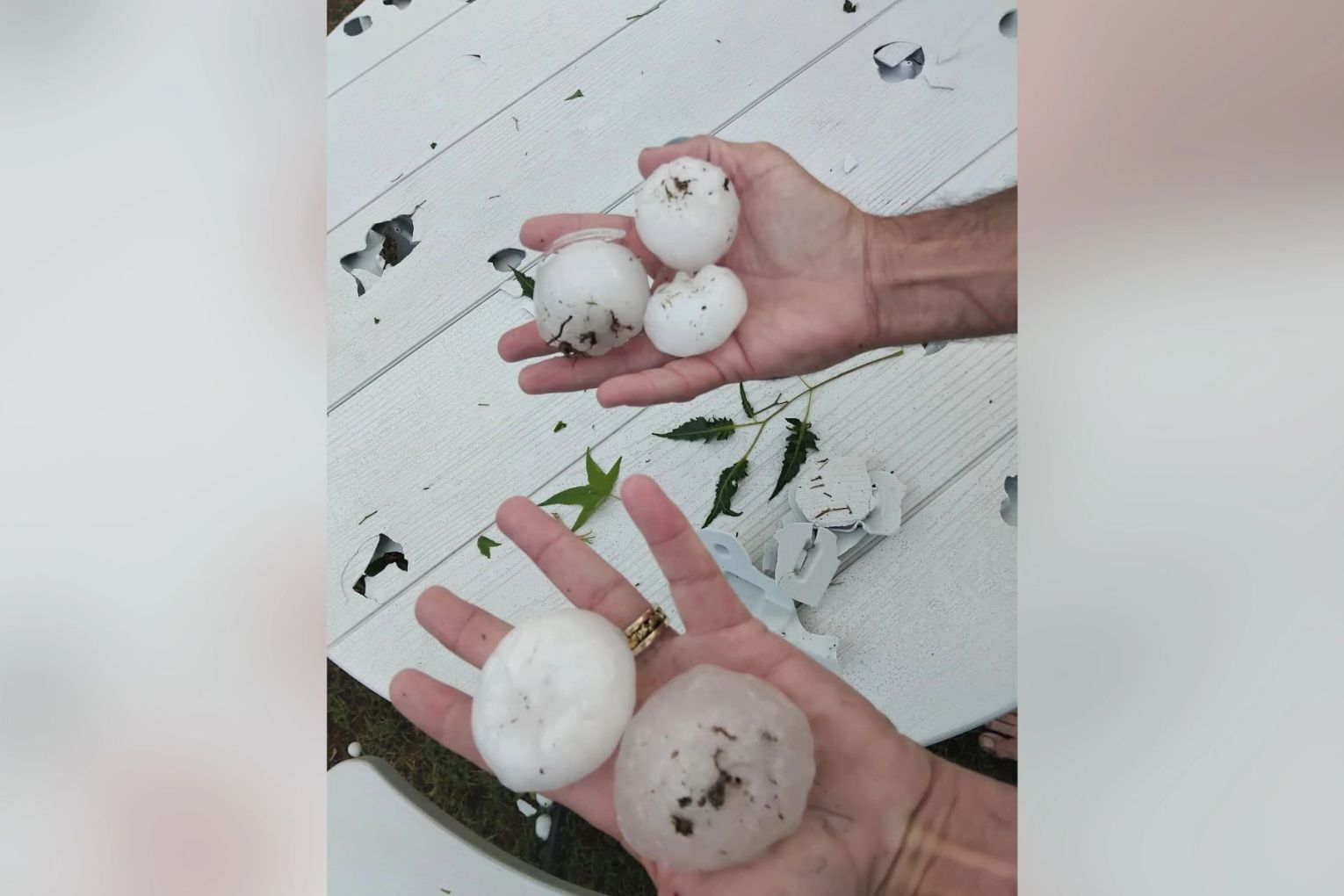 On Saturday, nine people attending the 150th Anniversary of Esk State School, northwest of Brisbane, were pelted with giant hailstones, some as big as 9cm, in a supercell thunderstorm, as heavy rain smashed southeast Queensland.