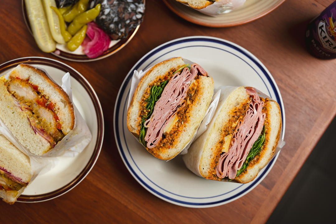 Mercatus Deli, Brisbane City: This Euro-style provisioner on Creek Street stocks a seemingly endless array of imported goods, pantry fillers as well as a stacked cabinet of fresh sandwiches and pastries. Beyond the decadent desserts (including a drool-worthy pistachio tiramisu), Mercatus serves up a delicious selection of sandwiches, fresh baguettes and scacciata (Sicilian-stuffed flatbread). A fan favourite is the mortadella scacciata (chewy flatbread with ribbons of mortadella, gooey burrata and crushed pistachio). Described as your ‘home-town deli’, Mercatus serves up a simplistic sandwich selection, jam-packed with authentic Italian flavours.