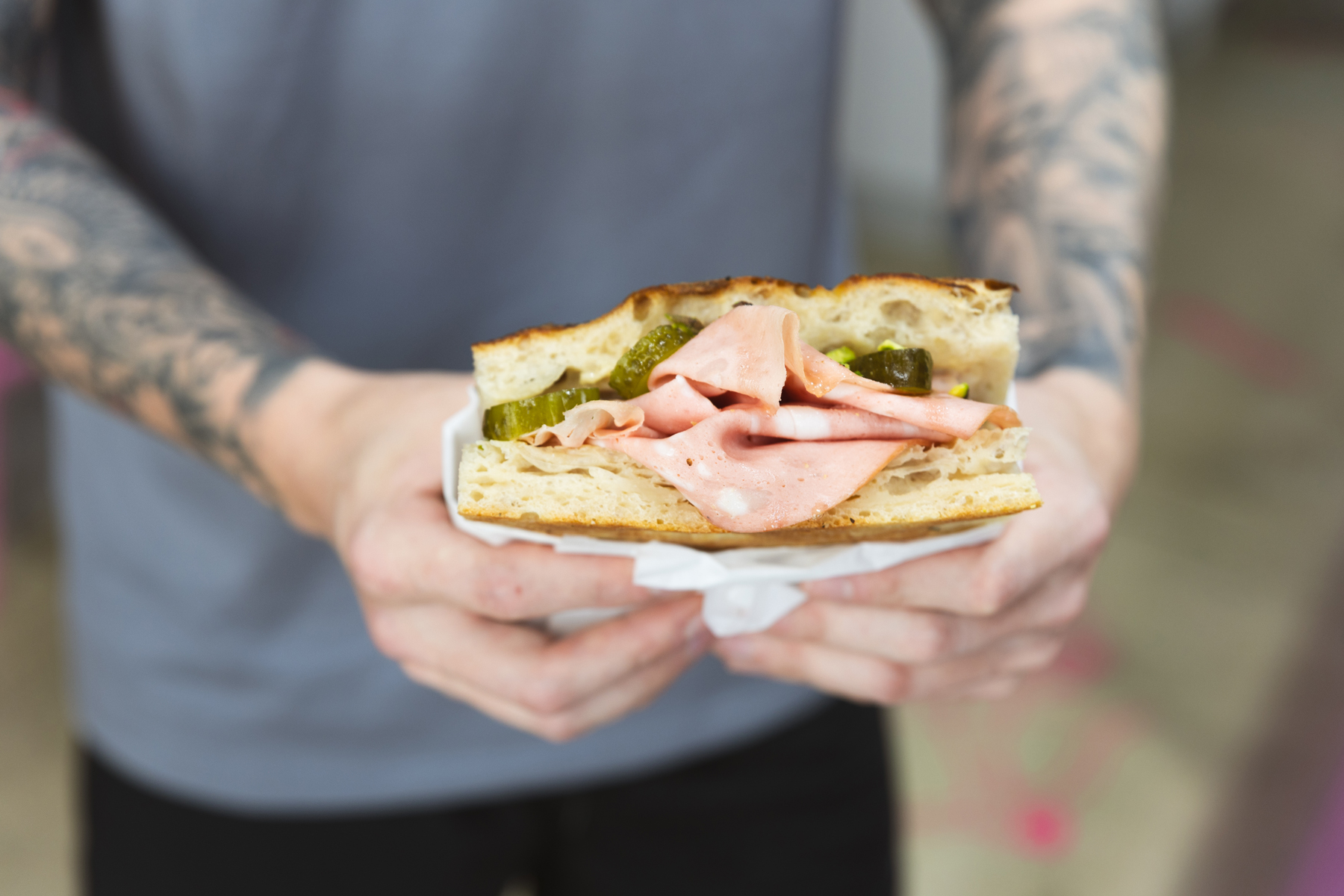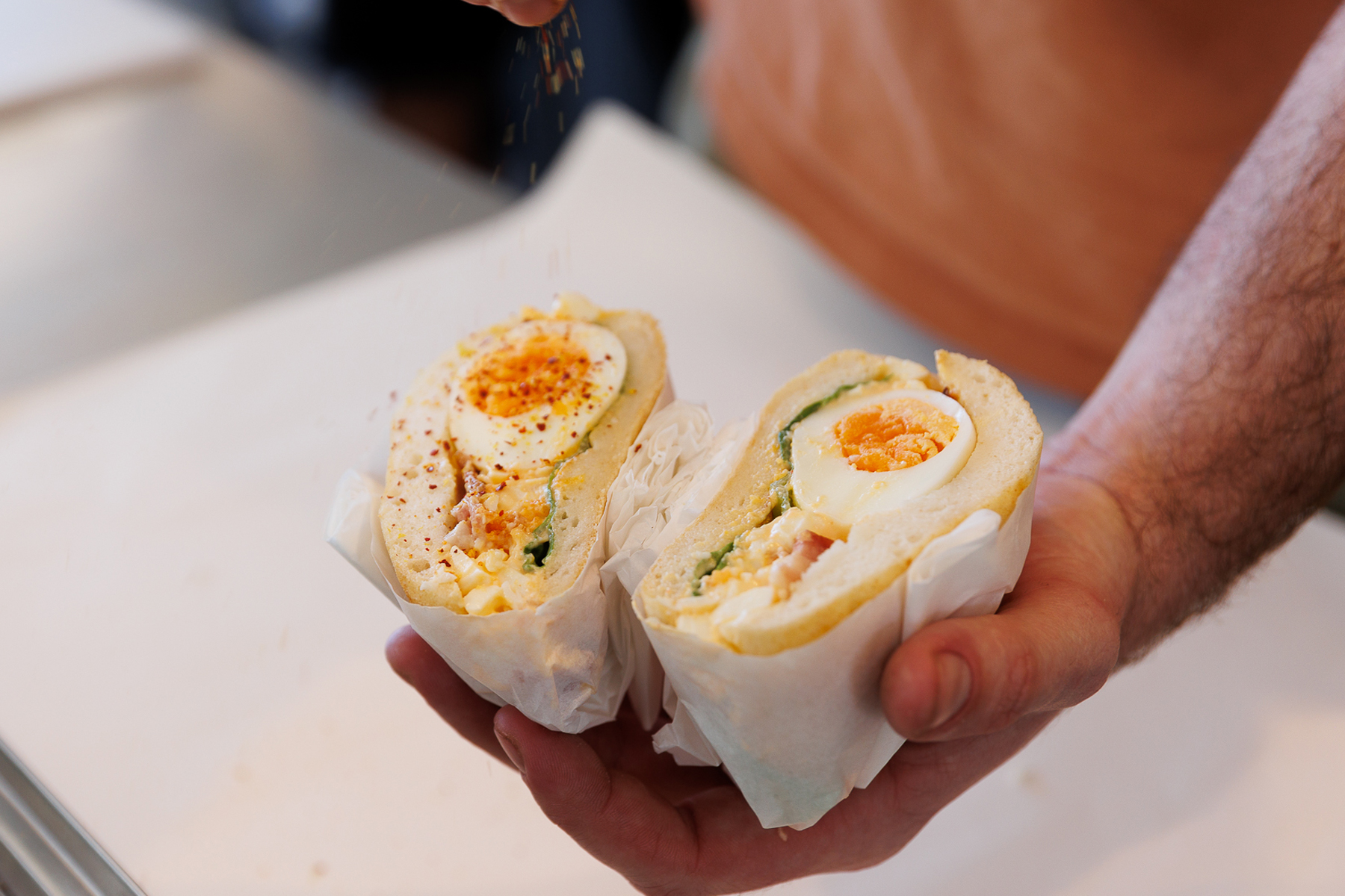 Anytime Coffee, Brisbane City: One of The City’s best coffee spots is now serving similarly sensational sandwiches! Seek out Anytime Coffee and nab a made-to-order deli-style sandwich boasting vibrant-yet-balanced flavours. There’s a breakfast bap with baked omelette, gruyere, tarragon butter and chutney, a refreshingly crunchy salad sandwich with seasonal veg, avocado, mint, sunflower seeds and green dressing, a cold cut-packed deli sandwich with leg ham, salami cotto, capocollo, provolone, green olives and guindilla peppers, and a roast porchetta number with chutney, mustard and herb salad.