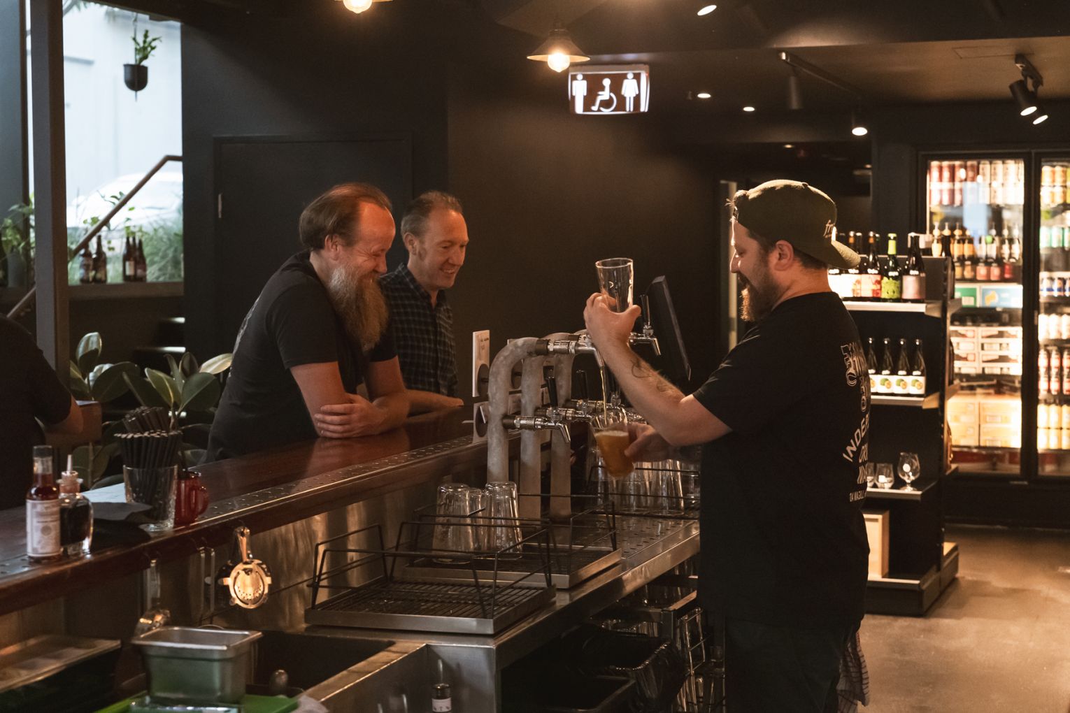After closing their famous Caxton Street boozer in 2024, Brewski owners Antoinette Pollock and Matt Emmerson quickly moved to open a new hybrid concept in the heart of Fortitude Valley. Alfred St Bar & Bottlo is part bar and part liquor store that occupies two-level venue previously home to long-running gin and cocktail bar Dutch Courage. The concept melds the best bits of Brewski and its bottle shop-offshoot My Beer Dealer, with shelves and fridges stocking everything from Australian craft beers to artisanal spirits and new-wave wines, while an on-site bar (equipped with six taps) dispenses a rotating selection of the team’s favourite drops. The site’s existing kitchen equipment is also being put to good use, with the likes of Cajun-style boiled peanuts, Nepalese-style chicken dumplings, grilled oyster mushroom skewers (from Urban Valley Mushrooms around the corner), crispy pork belly, poke bowls and vegan and vegetarian-friendly cheeseburgers available.