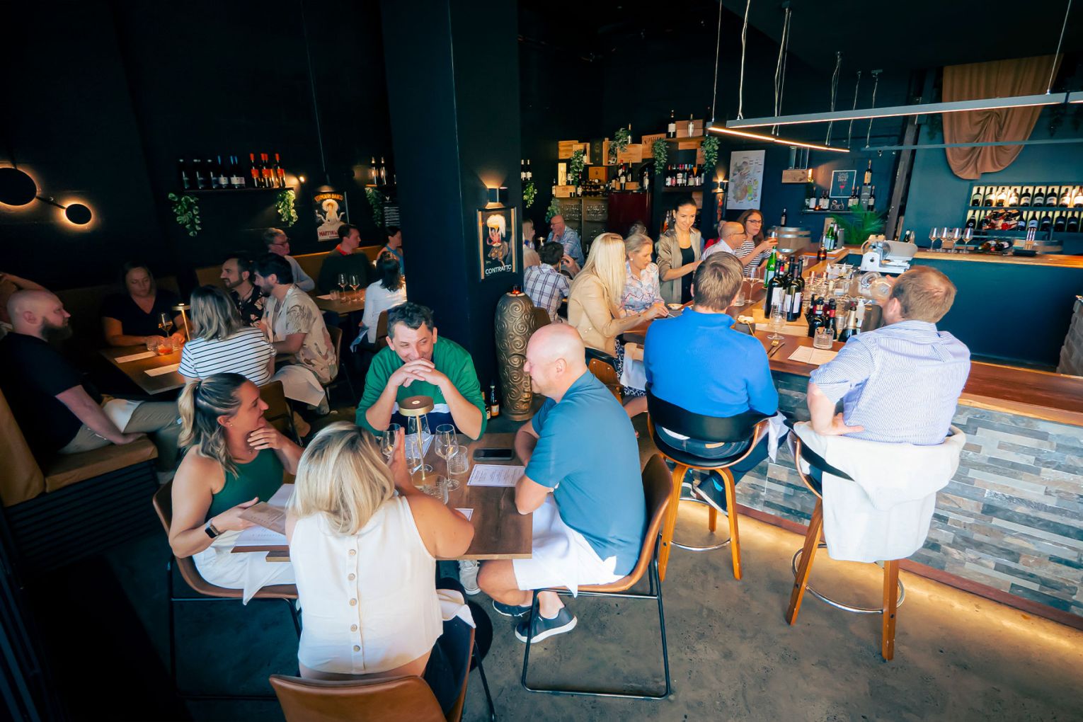 D.Vino Bistro & Vinoteca is an intimate 40-seater Italian restaurant in Woollongabba. Its interior conjures the atmosphere of a relaxed dinner party with bar and table seating, seating, with a tasteful mix of lounge and saxophone house music burbling away in the background. Drawing inspiration from European hospitality, particularly the wine bars and restaurants of Piedmont in northern Italy, D.Vino’s menu presents share-style shares as well as innovative a la carte options prepared with passion and care using high-quality ingredients. Feast from the ocean with antipasti like yellow-fin tuna tartare or oven-baked Victorian scallops topped with trout caviar, as well as secondi like gnocchi alla amalfitana with seafood ragout and mussels, or market fish grilled with asparagus, parsnip veloute and baked kale. You can also dine off the land with Italian-style cassoulet and charcoal-grilled lamb. Be sure to leave room for D.Vino’s decadent dessert menu, which includes the likes of warm pistachio souffle and the Non Sono Un Formaggio or ‘I’m Not A Cheese’ – mandarin mousse paired chocolate-cake crumble and sheep ricotta. The menu is backed by an extensive wine list featuring more than 400 drops. The collection is predominantly French and Italian, with a few niche Australian producers sprinkled in. There is also a tightly curated collection of cocktails, carefully chosen to complement the culinary offerings.