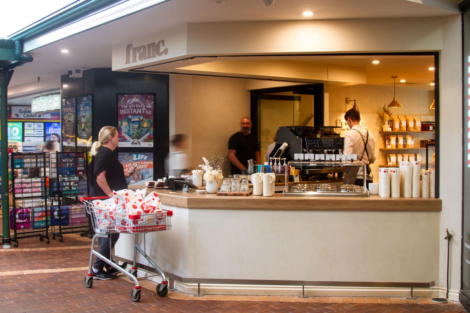 New Farm shopping hub Merthyr Village welcomed a fresh-faced newcomer in September 2022 – one specialising in express eats with a bit of a French spin. Franc. is the new concept from Matt and Dan Jefferis, the brothers behind hugely popular New Farm cafe (and fellow Merthyr Village resident) Savour. The duo took over the space previously occupied by Dello Mano for the concept, which is described as patisserie-inspired pit stop specialising in everything from sandwiches and pastries to coffee and gelato. Matt and Dan have linked up with interior designer Alexa Nice to hone in on Franc.’s aesthetic, which has resulted in a chic and light makeover comprised of cream-coloured Venetian render plaster, oak bench tops and shelves, and brass lighting fixtures. As for the offering, Franc. turns out a broad selection of morsels, including fresh baguettes, sandwiches and salads, plus pastries, pies and croissants baked on site at Savour. Pie flavours will include hearty Angus beef and osso bucco pies, which will be available alongside Tasmanian lamb pasties and chorizo quiches. Franc. will also feature a small gelato cabinet stocked with silky goodness supplied by La Macelleria, with flavours like chocolate, vanilla, pistachio, salted caramel and raspberry cheesecake available alongside a sorbet. When it comes to coffee, Franc. is pouring its own signature blend made in collaboration with Providore & Co in Bowen Hills as well as tea from Tour de Tea.