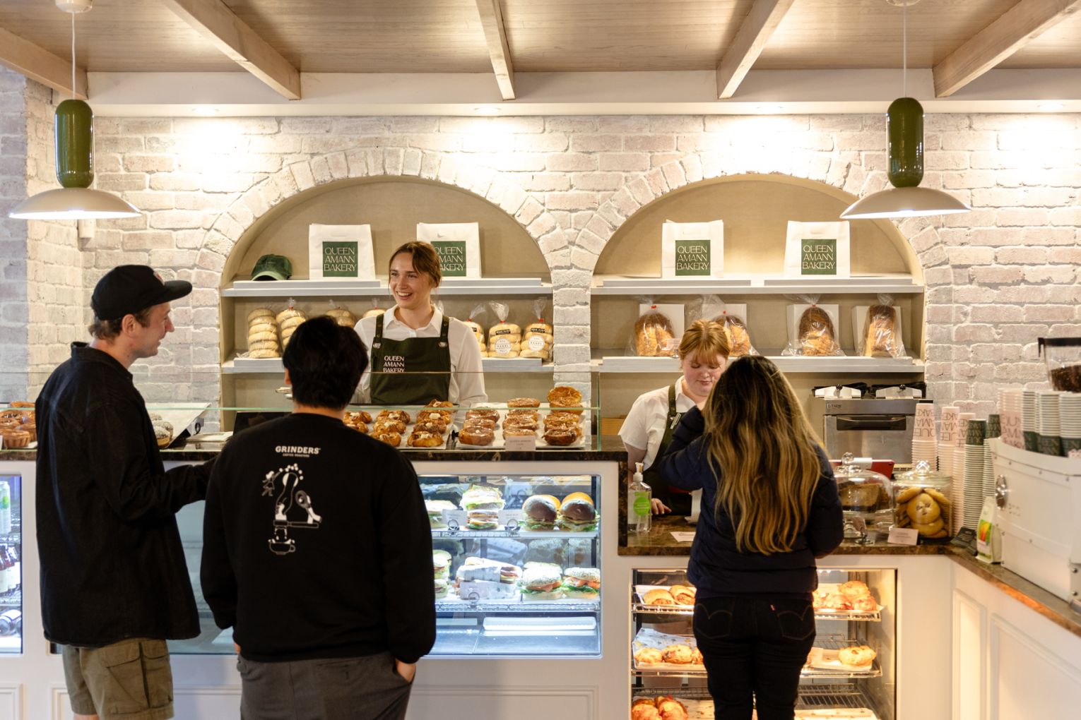 Taking over the former home of the beloved King Street Bakery in Bowen Hills, Queen Amann Bakery – helmed by Larry Lim, Eddy Tice and Ania Kutek – is a bold concept based around the kouign-amann, a flaky, buttery Breton pastry. Since opening, the bakery has quickly won over locals, regularly selling out most of its range. Queen Amann offers a variety of sweet and savoury delights, including classic and elevated takes on kouginou-amann (including variations boasting strawberry chamomile and bourbon chocolate pecan), croissants, danishes, babka, sausage rolls, pies focaccia and take-home items from its sister brands NYC Bagel Deli and Cordelia Sourdough Bakehouse. Queen Amann also serves specialty beverages like matcha and hojicha alongside Five Senses coffee and embraces a light, modern aesthetic with limited dine-in and footpath seating.