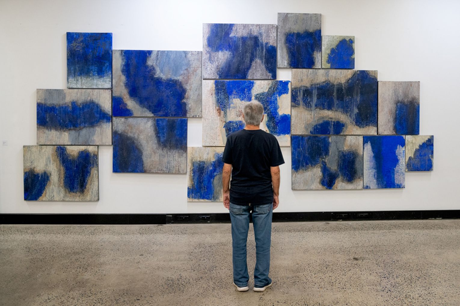 Over the past 40 years, Andrew has developed a contemporary practice that reflects the legacy of modernism through pattern and abstract investigation. Curator Nicholas Tsoutas notes that the work blurs “the distinctions between what constitutes a painting as a finished work of art and the by-product and detritus produced through the painting process.”