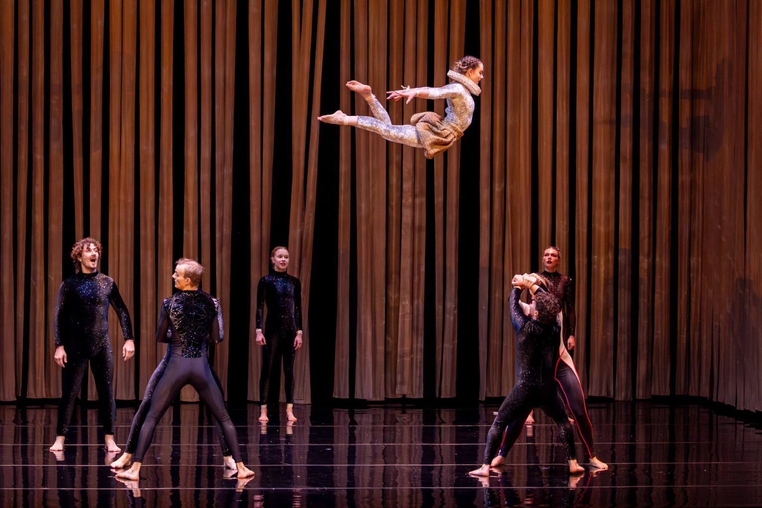 Under the direction of Yaron Lifschitz, the Circa ensemble brings Duck Pond to life with a lively mix of classical inspiration, contemporary circus energy and cheeky humour. The result is a thrilling circus mash-up where graceful swans and hapless princes share the stage with a quirky cast of characters, including a sequinned, flipper-wearing duck army to a sultry burlesque black swan.