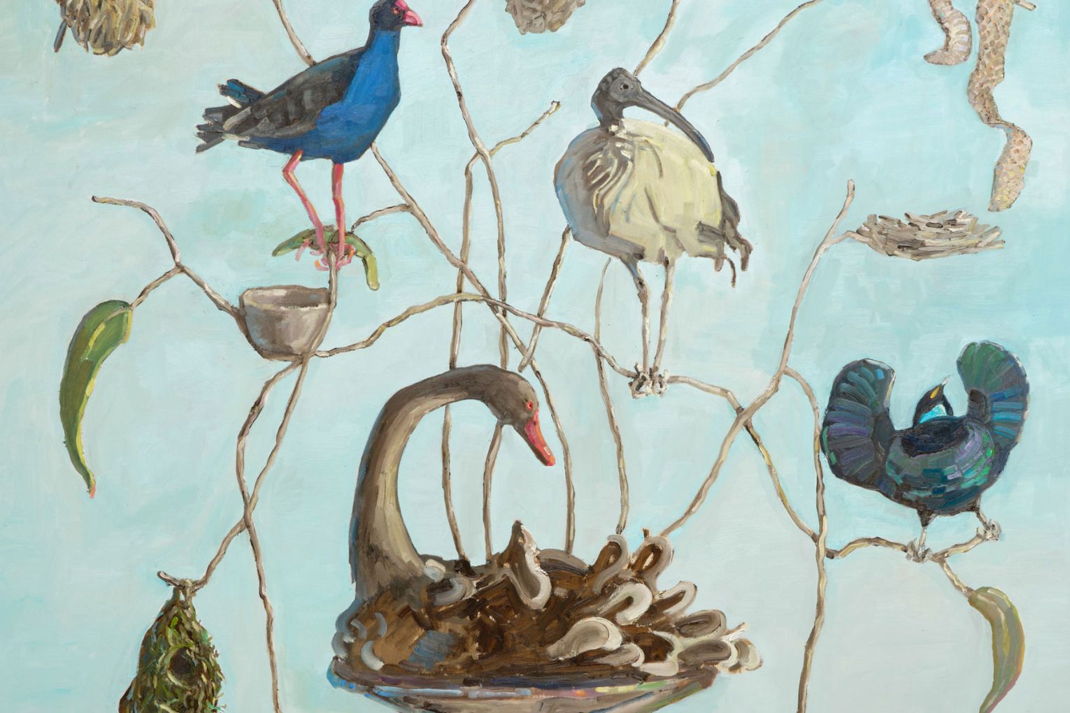 Edwina Corlette Gallery presents IN THE STICKS, a new exhibition by Sydney-based artist Jane Guthleben, who reimagines the still life tradition through an Australian perspective. Drawing inspiration from the Dutch Golden Age vanitas genre, Jane replaces European blooms with native flora, birds and insects, capturing the vibrancy and texture of the local landscape. Her richly layered impasto paintings balance humour, symbolism and ecological reflection, creating compositions that appear both opulent and impossibly delicate. Through these works, Jane celebrates the beauty and fragility of the natural world while continuing her exploration of still life as a living, evolving form.