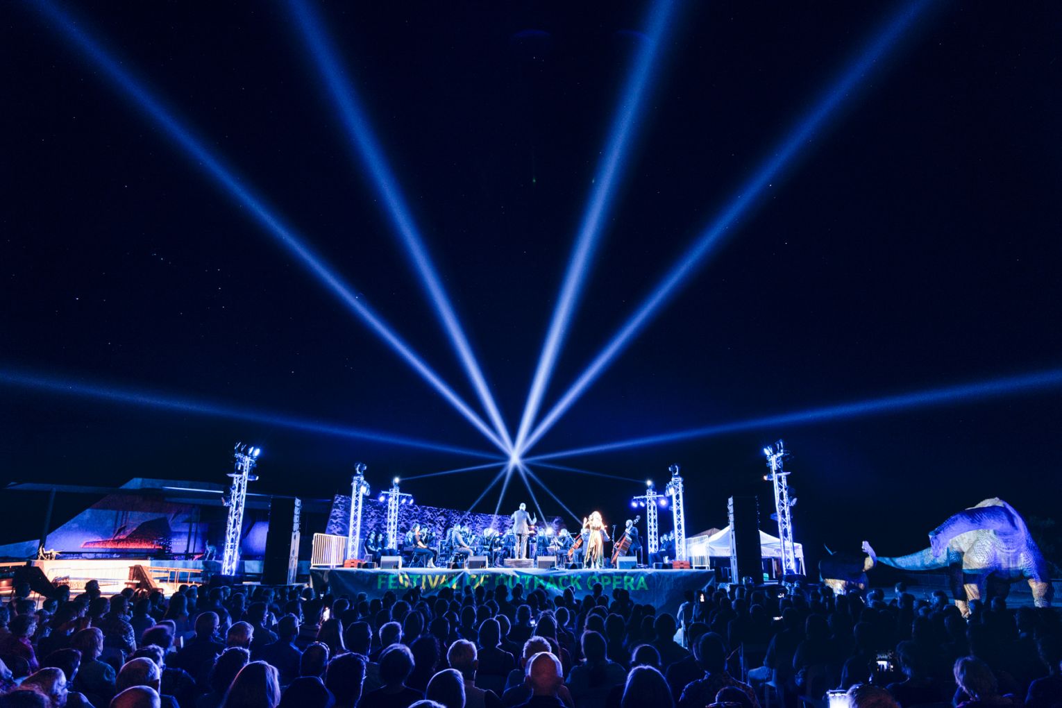 Dark Sky Serenade takes audiences to the Australian Age of Dinosaurs museum, where an open-air opera concert unfolds atop a 75-metre-high mesa as the colours of the outback shift from daylight to dusk.