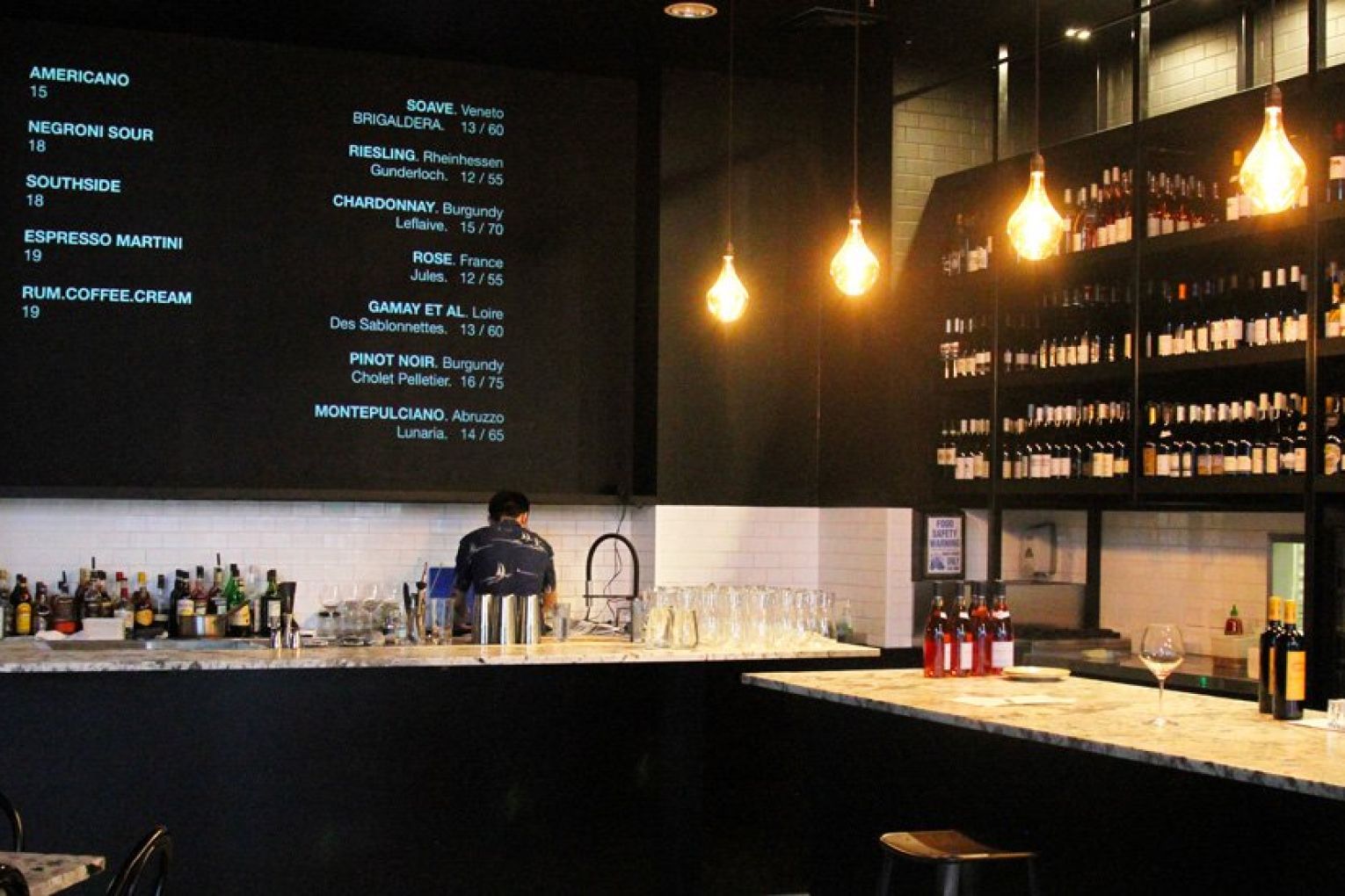 While Happy Boy and Greenglass focus heavily on Australian wines, Snack Man is taking a more continental approach. Ceiling-high shelves create a visual wine library, complete with a rolling ladder to retrieve elevated drops. Cameron’s aim to the wine list is to source bottles you can’t find anywhere else, importing never-before-seen drops from natural and emerging winemakers and regions across the globe. The ever-changing selection will feature around 200 bottles and each week Cameron will curate a list of his wine-wall highlights for those needing a little help deciding. Mixologist Jack Lio (ex-The Bowery) has come on board to lead the cocktail side, creating a rotating list of seasonal cocktails using some pretty ingenious techniques. Jack will take a winemaker’s approach to cocktail creation, putting the fruit first and foremost rather than focusing on the spirits.