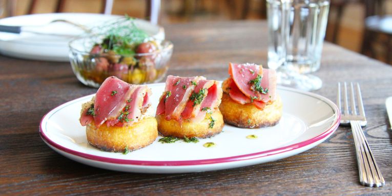 Ideally located opposite QPAC, Maeve encourages pre- and post-show imbibing, with the kitchen serving from 4:00 pm right up until close at midnight. As the name Maeve Wine might suggest, wine comes first and foremost here. Eleanor has curated an impressive wine selection, which leans towards smaller producers and less conventional, minimal intervention drops. Wines are available by the glass or bottle and those looking for a more serious sip can look to the Coravin and reserve list to find some seriously rare bottles, predominantly from Burgundy and Bordeaux, but with a splattering of old Australian and Italian producers. If wine’s not your speed, there is a ten-strong list of both beers and cocktails to quench your thirst. On the food front, Jessie has created a seasonally driven menu to complement the wine selection, designed mainly to share but that can easily be consumed as a solo venture. Maeve is built on a flexible dining model, catering to all dining styles and time restraints, with the menu divided into snacks, small and large plates, sides and desserts. The opening will see the kitchen offering a limited menu to start, which will gradually expand over the coming weeks. Expect to find the likes of sourdough crumpets with honey duck ham, hazelnut mustard and thyme, black-garlic waffles with gelatine de vino and blue-cheese parfait, and charcoal-grilled hanger steak with cafe de Paris butter and fries, with the menu evolving based on produce availability.