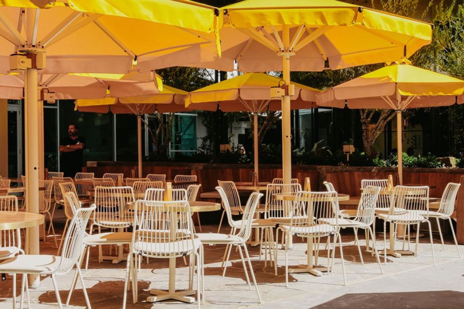If you’ve meandered down James Street in the last week or so, you would have spied a collection of sunray-hued umbrellas casting a warm glow over a welcoming olive-tree-lined courtyard. As of Wednesday April 20, those umbrellas will be shading hordes of hungry revellers devouring home-style Mediterranean cuisine by the plate when much-anticipated vegetarian eatery Sunshine officially opens its doors. The sun-dappled eatery is the latest concept from seasoned restaurateur Simon Gloftis and business partner Theo Kampolis, positioned a short stroll across James Street from his acclaimed restaurants Hellenika and SK Steak & Oyster. The Weekend Edition was lucky enough to get a sneak peek today before it opened to the public – here’s an inside look …