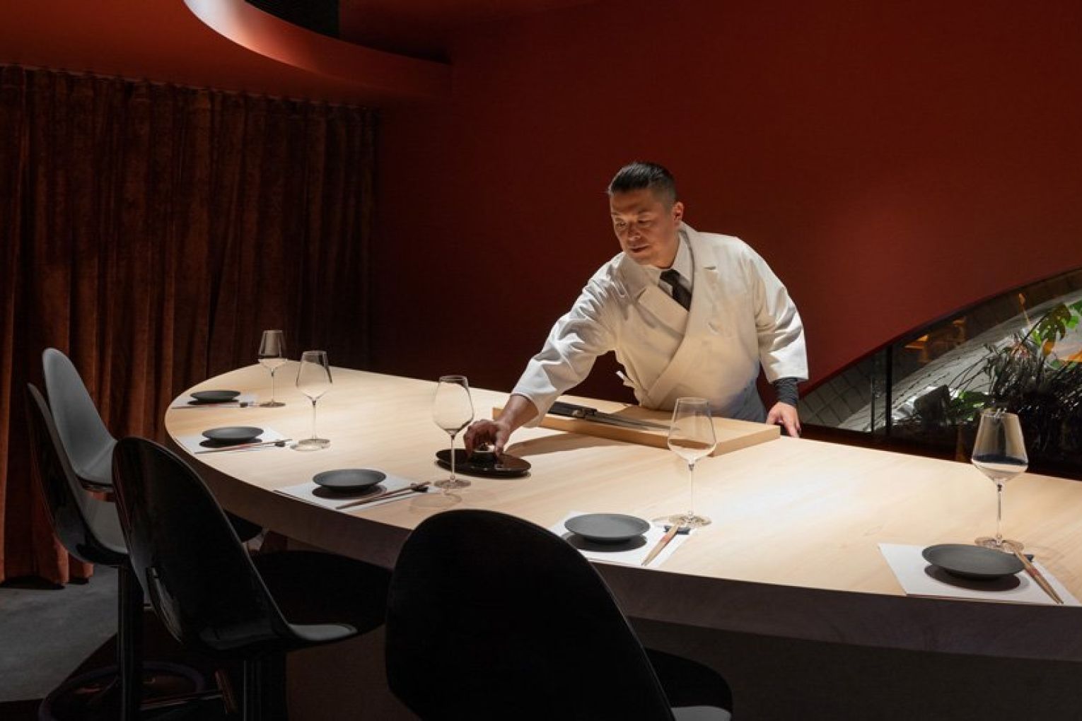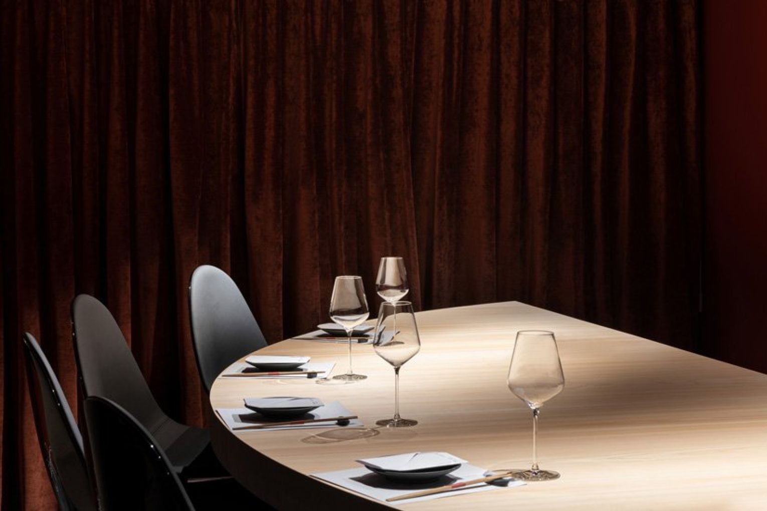 From produce selection to the tiniest of fit-out details, every single element of Sushi Room has been carefully considered. A visit to Sushi Room will be an all-encompassing experience geared to delight the senses – there will be a restrained sense of theatre, with the sushi chef as the leading performer. Richards & Spence have prioritised this theatrical element in the design, using architectural punctuations and cinematic lighting to showcase the chef and the restaurant’s centre stage – a 9.3-m solid Japanese Hinoki timber sushi bar, floating in a pool of black limestone. A traditional and culturally significant timber that is native to Japan and Eastern Asia, the specifically sourced Hinoki wood is renowned for its high quality (it is often used in the construction of temples, palaces and shrines) and coveted for its natural antibacterial and water-resistant qualities, as well as its striking grain pattern and alluring aroma. If you haven’t already realised, no detail (or expense) has been spared in the vision for Sushi Room.