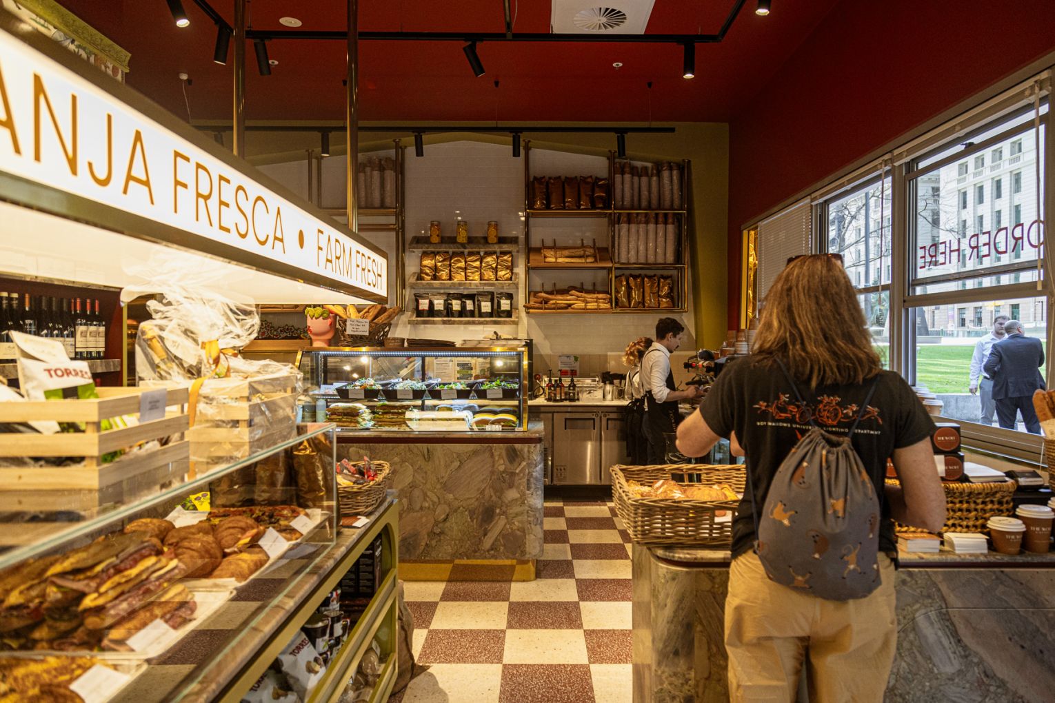 “The city can engage with [the deli] at a touchpoint that’s really convenient,” says Fabian. “It could be a $15 mixed-meat baguette or a salad, or a beautiful champagne basket as a present.”