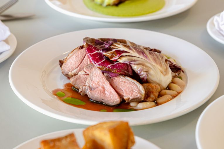 The fun starts with snacks like duck-liver parfait with native tamarind jelly and brawn (a form of cold-cut terrine) served with dressed leaves and preserved apricot. From there, portions increase in size with the likes of fried Falls Farm eggplant with tomato, shallot and herbs, pipis with oyster mushroom, young ginger and basil, and sweetcorn agnolotti with crema di parmigiana. Gum’s large plates are shareable or hoardable, with the likes of cabbage-wrapped cobia with zucchini and creme fraiche, Margra lamb rump with sweetbread, beans and radicchio, and autumn pot pie with caramelised onion and gruyere pairing well with a side of crispy potato pave with aioli. For dessert, the Davidson plum and rhubarb sorbet, and the date pudding with cardamom ice-cream are stand-out selections.