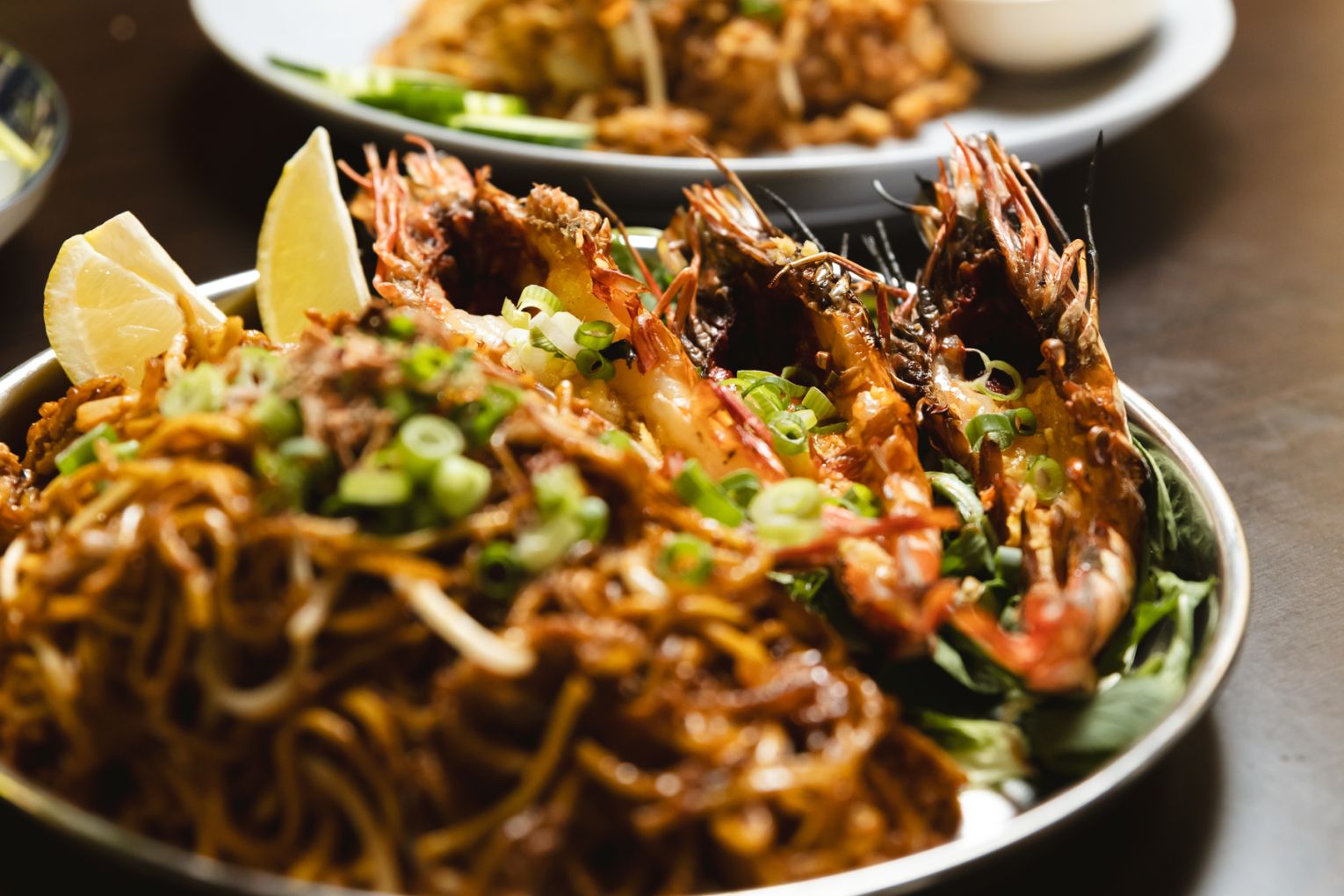 Lemak Kitchen and Bar’s menu includes original favourites like nasi lemak, crispy fried chicken sandwiches, fried-chicken combos and char kway teow with fishcake, prawns and Chinese sausage. When it comes to the new additions, seafood (sourced daily from Sunnybank Fish Market) is a major focus. Guests can pair their roti canai with Moreton Bay bug salad, twirl a fork through wat tan hor (flat rice noodles with egg gravy) served with jumbo prawns and enjoy nasi goreng with a helping of crab meat. Other must-try morsels include the Crying Tiger beef served with chilli jam, chicken noodle soup with rice ho fun noodles, succulent satay skewers and beef rendang curry puffs.