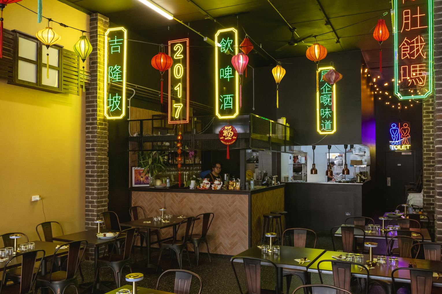 So, last year Thang decided that Lemak needed to evolve. A quick location scouting effort brought him to a vacant restaurant space in Woolloongabba – a spacious brick-encased tenancy that has, over the years, been home to pioneering pizzeria Sorellina and burger joint Mac From Way Back. The site ticked all the boxes and soon Thang and his team began a substantial refit of the venue ahead of its rebirth as 55-seat Lemak Kitchen and Bar. After overhauling the kitchen, Thang and his designer set to work on instilling a vibe that matched Lemak’s hawker-style inspirations. The resulting aesthetic features plenty of neon signage at the front window and suspended above the dining area, creating the illusion of a heaving night market.