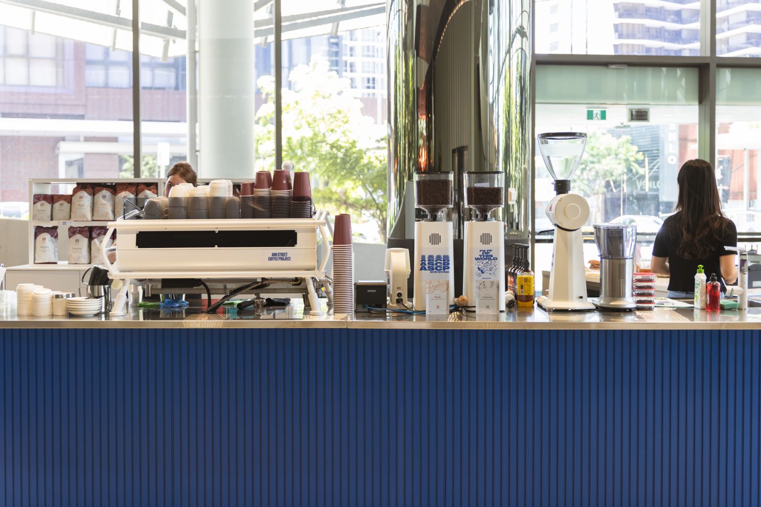 Originally born as a pop-up coffee cart that operated at 80 Ann Street, ASCP’s permanent home is a blue-and-white-tiled kiosk nestled in the centre of 900 Ann Street’s entry foyer. Though a few banquette seats and tables can be found nearby, ASCP is equipped to primarily facilitate takeaway trade. While it might look like a simple set-up, the ASCP team has invested in a bunch of top-grade equipment to ensure the quality of product is the best as possible.