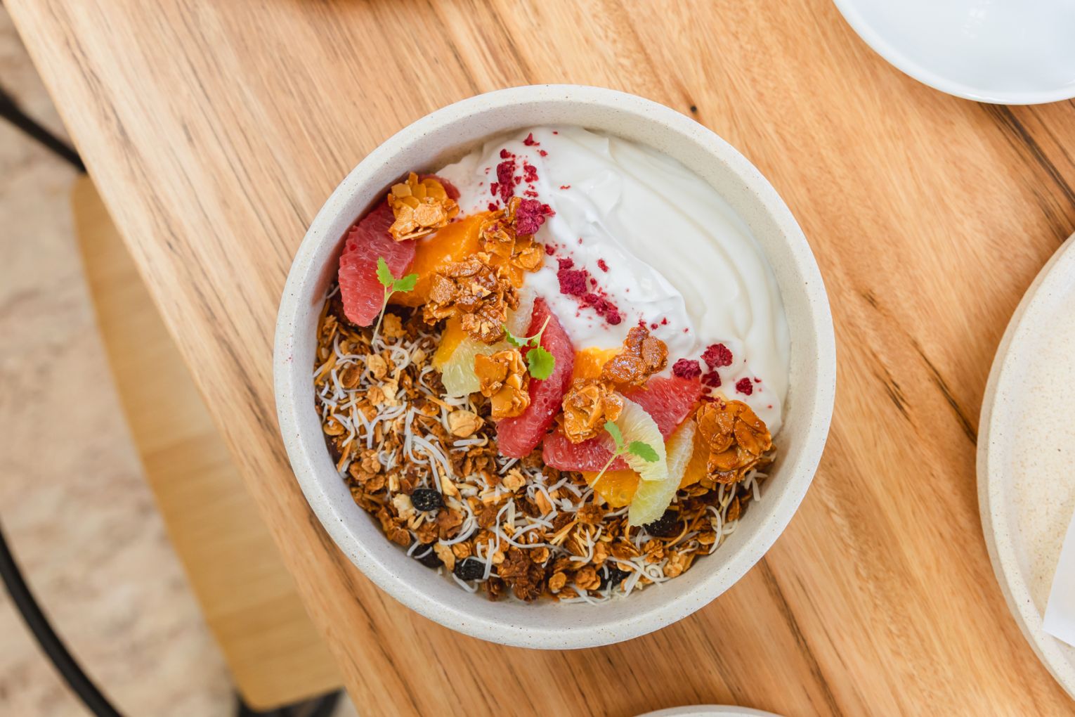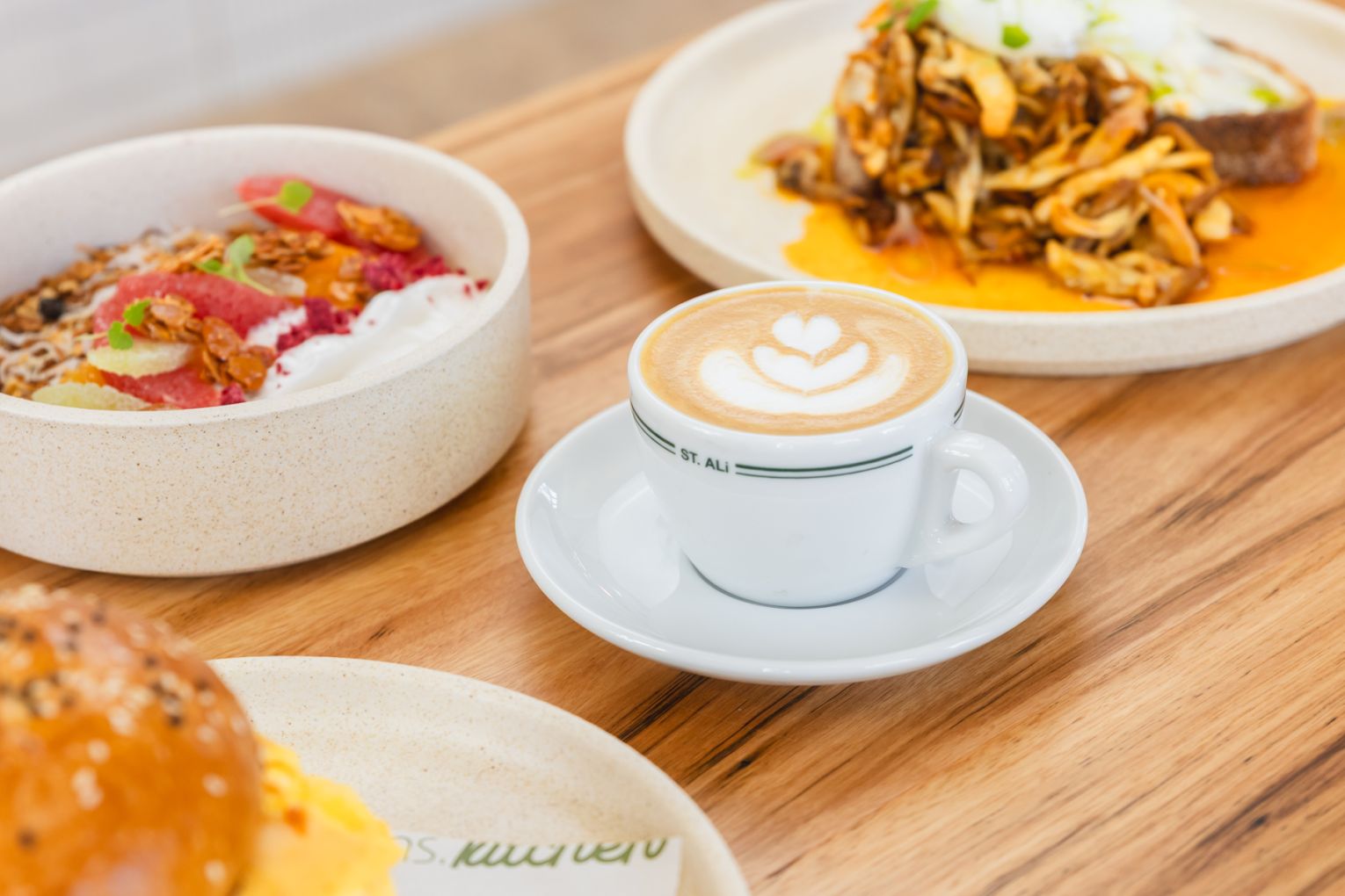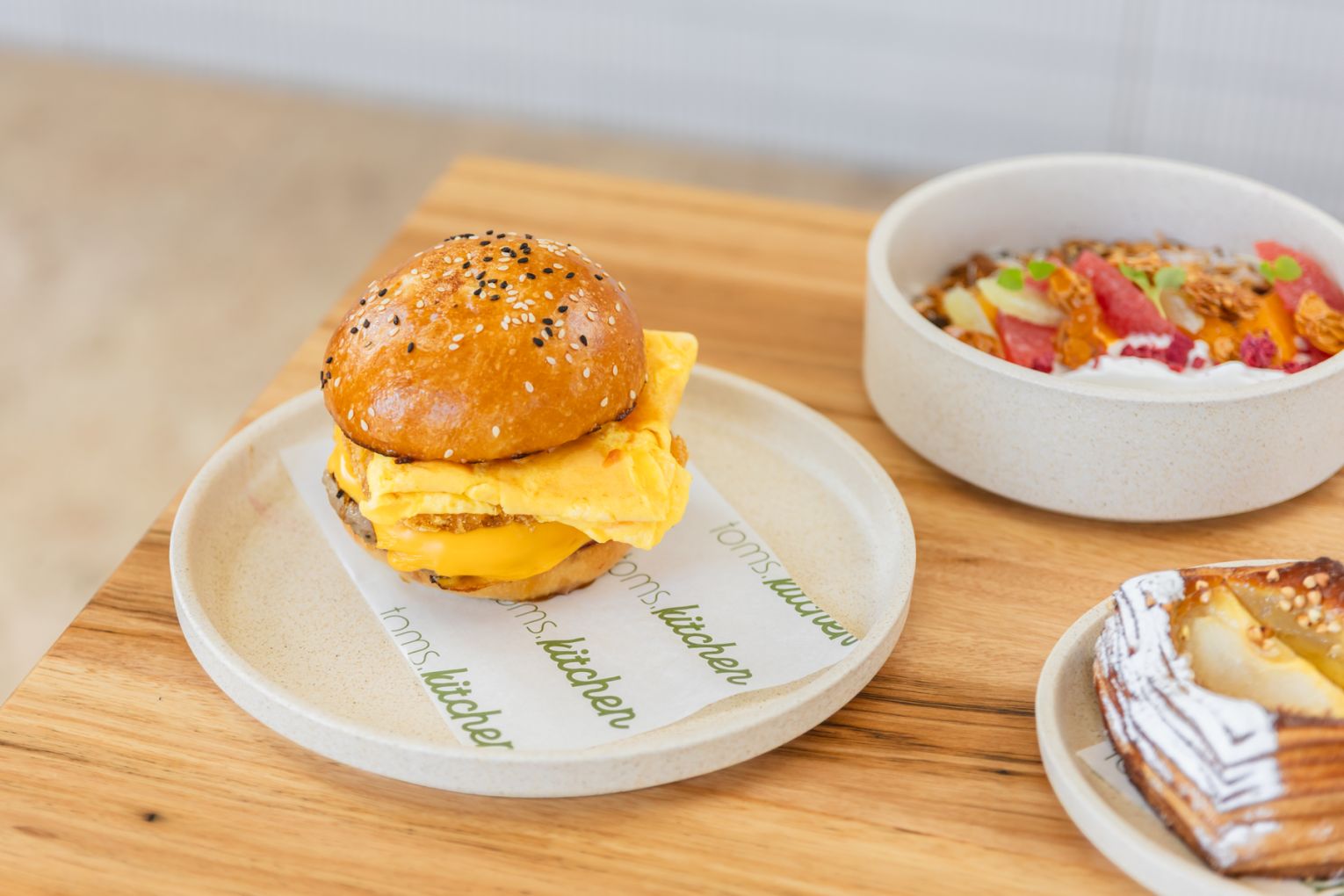 The all-day offering is stacked, featuring winning dishes like warm oat porridge with poached seasonal stone fruit and medjool dates, brulee brioche toast with Chantilly cream, dulce de leche and torched bananas, a brekkie muffin with a longganisa pork patty, cheese, egg, hash brown and banana ketchup, guacamole on croissant toast with scrambled egg, pecorino and toasted sesame, and potato hash with smoked salmon, poached eggs and tomato bearnaise sauce. Bread is supplied by Sprout Artisan Bakery, while Tom’s Kitchen uses ST. ALi as its specialty coffee provider.