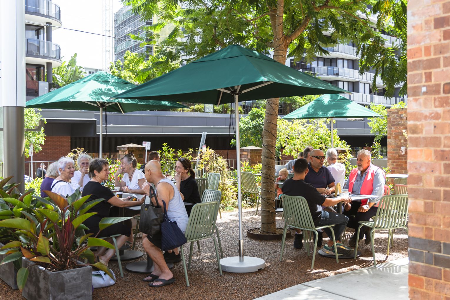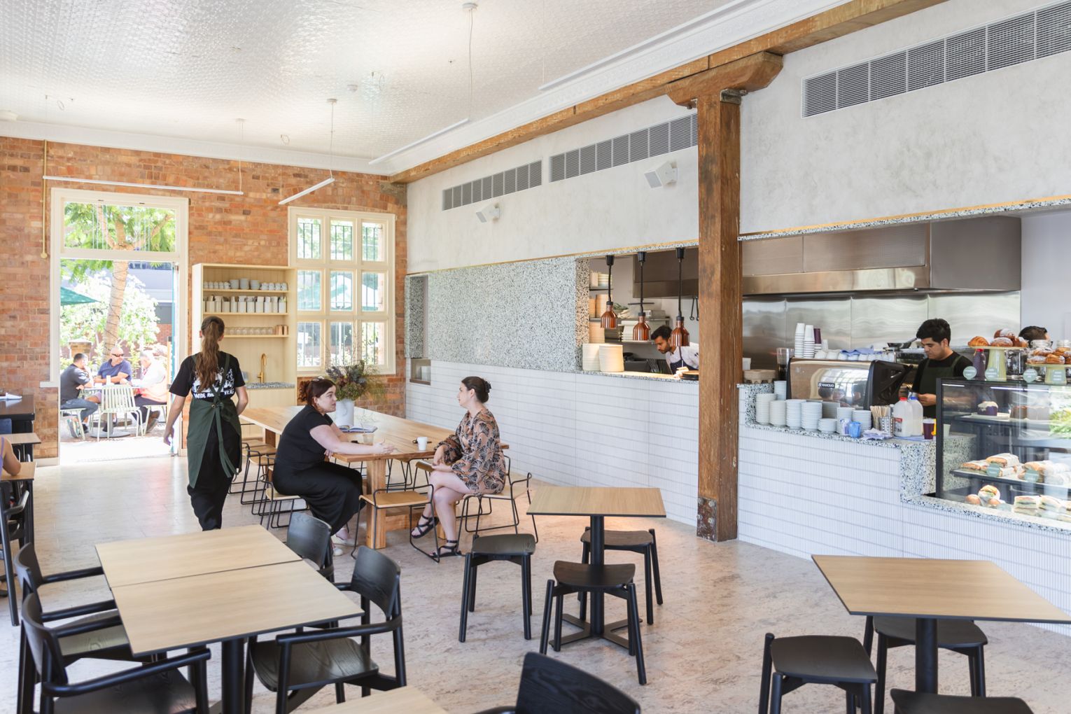 Nestled inside the Drake Street end of the Thomas Dixon Centre’s original red-brick building, Tom’s Kitchen marries the stately nature of the structure’s Georgian Revival-style design with modern elements, creating a striking juxtaposition between new and old that echoes the centre’s recent revitalisation. The cafe’s 80-odd seats are spread across three distinct areas. A high-ceilinged interior space is where you’ll find the white-tiled service counter and kitchen pass, which is offset by exposed brick, pressed-metal ceilings and timber tables. Overlooking Montague Road is a sun-dappled alfresco terrace, where a scattering of tables are shaded by green umbrellas and leafy foliage, while a strip of seats can be found on the other site of the building, just near the Thomas Dixon Centre’s main entry.