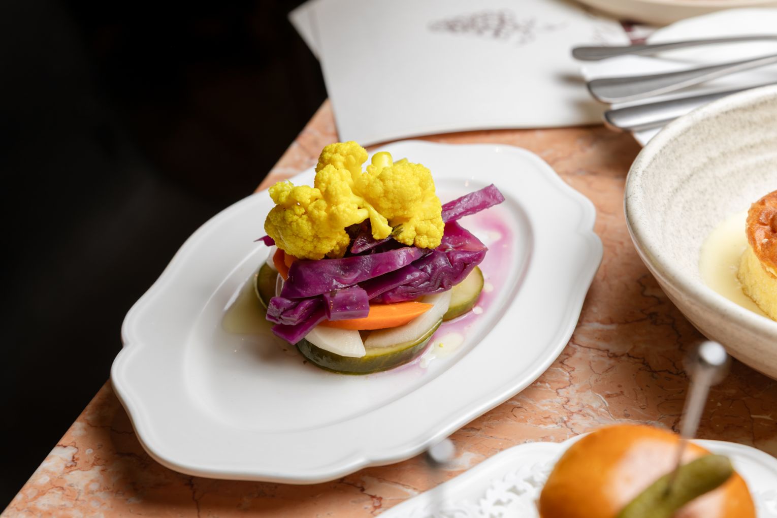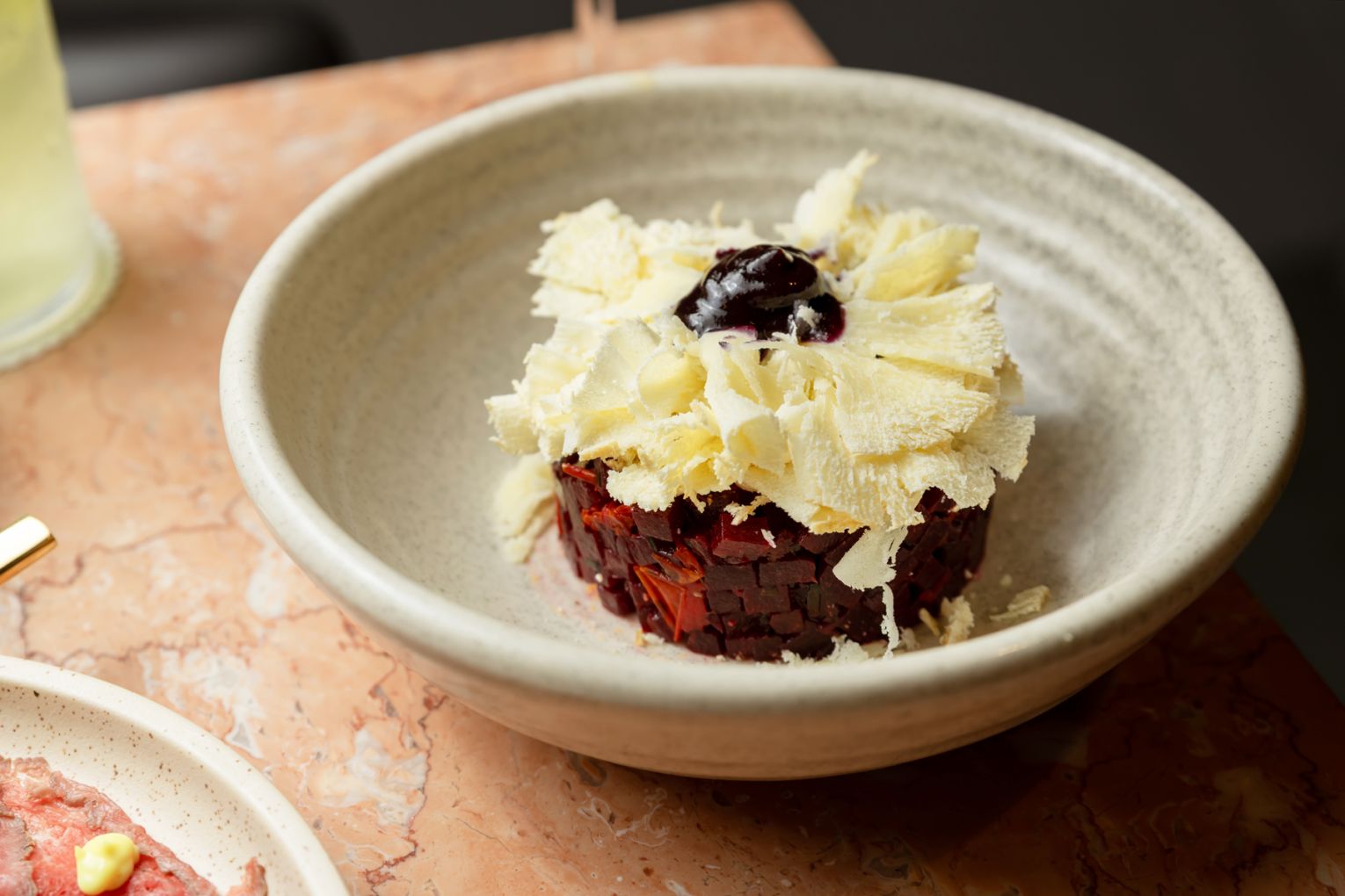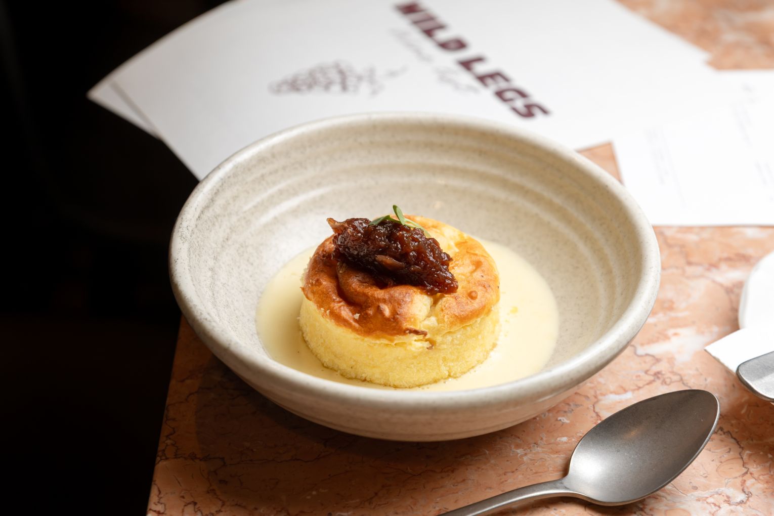 Helming the Wild Legs kitchen is husband-and-wife chef duo Jean-Antoine Jeffrey and Priscila Hoerau – a talented tandem with some serious bona fides. In addition to cooking for HRH Prince Michael of Kent, the duo has also catered for the likes of Bill Gates and Boris Johnson. At Wild Legs, Jean-Antoine and Priscila are applying their classical training in French and modern-European cuisine to an easy-to-navigate menu. Snacks like focaccia with whipped butter, gildas and mortadella brioche buns lead into small plates of duck-liver parfait, stracciatella with roasted pineapple and beetroot tartare with blackberry gel and Tête de Moine. More substantial options include cheese souffle with onion jam, lamb merguez with labneh and fermented hot sauce, and cheese and charcuterie selections.