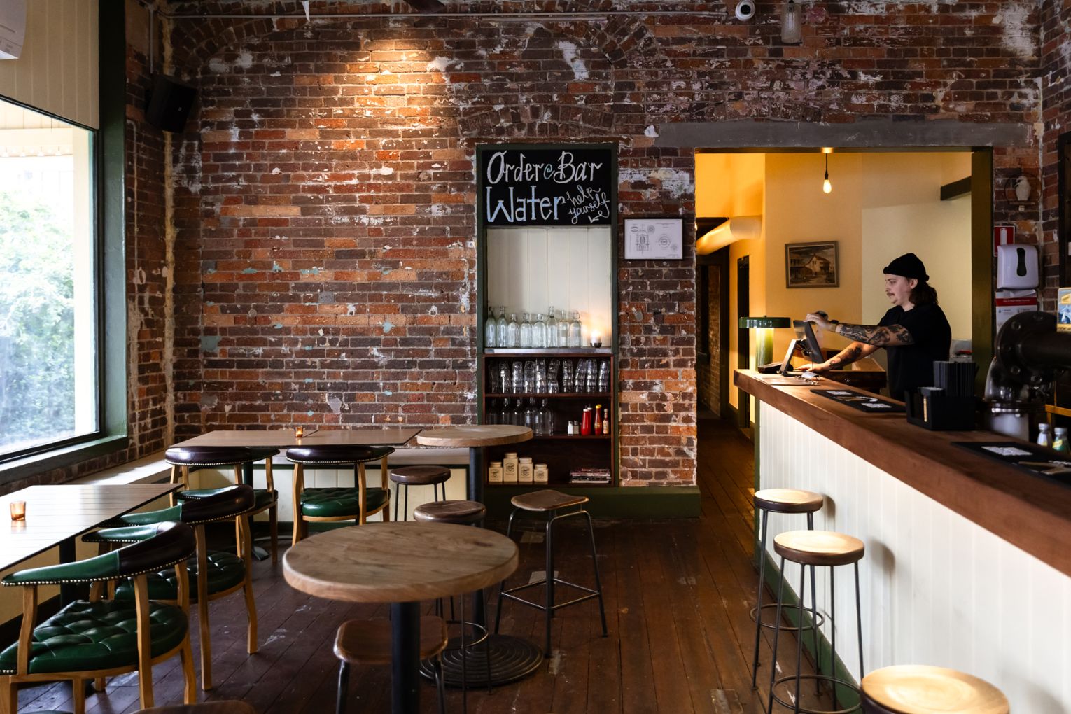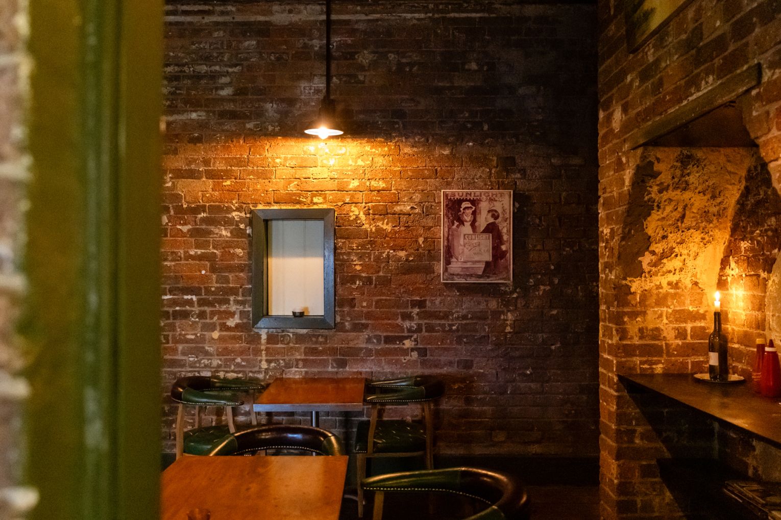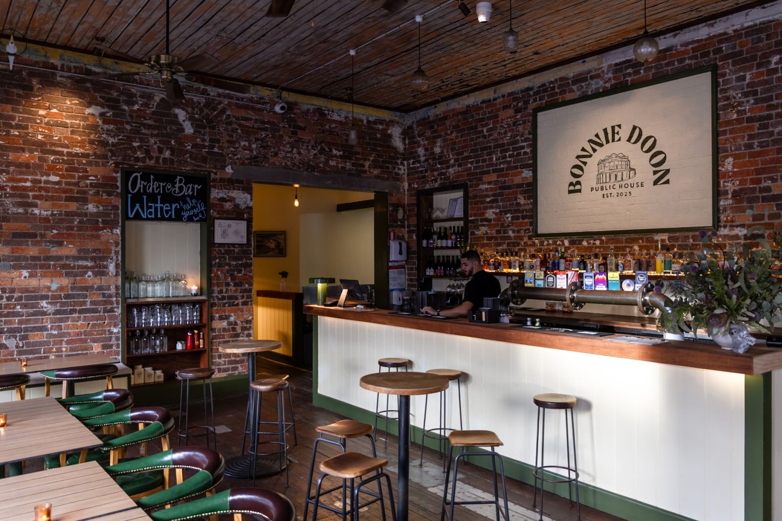 Entering Bonnie Doon from Brunswick Street, guests will find themselves first in what Asa describes as the sunroom – a front bar ensconced in exposed brick, furnished with timber tables and curved-back chairs upholstered in green leather.