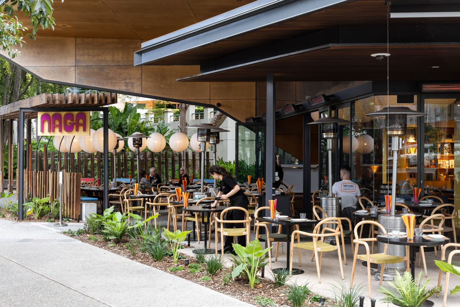 “I don’t want [guests] to feel like there’s any grey area between what was there previously and what’s there now,” says Andrew. “All of the furniture, the cutlery and the crockery that were synonymous with Eagle Street Pier has now come back. The bones of [Naga’s] original design are definitely still here.”