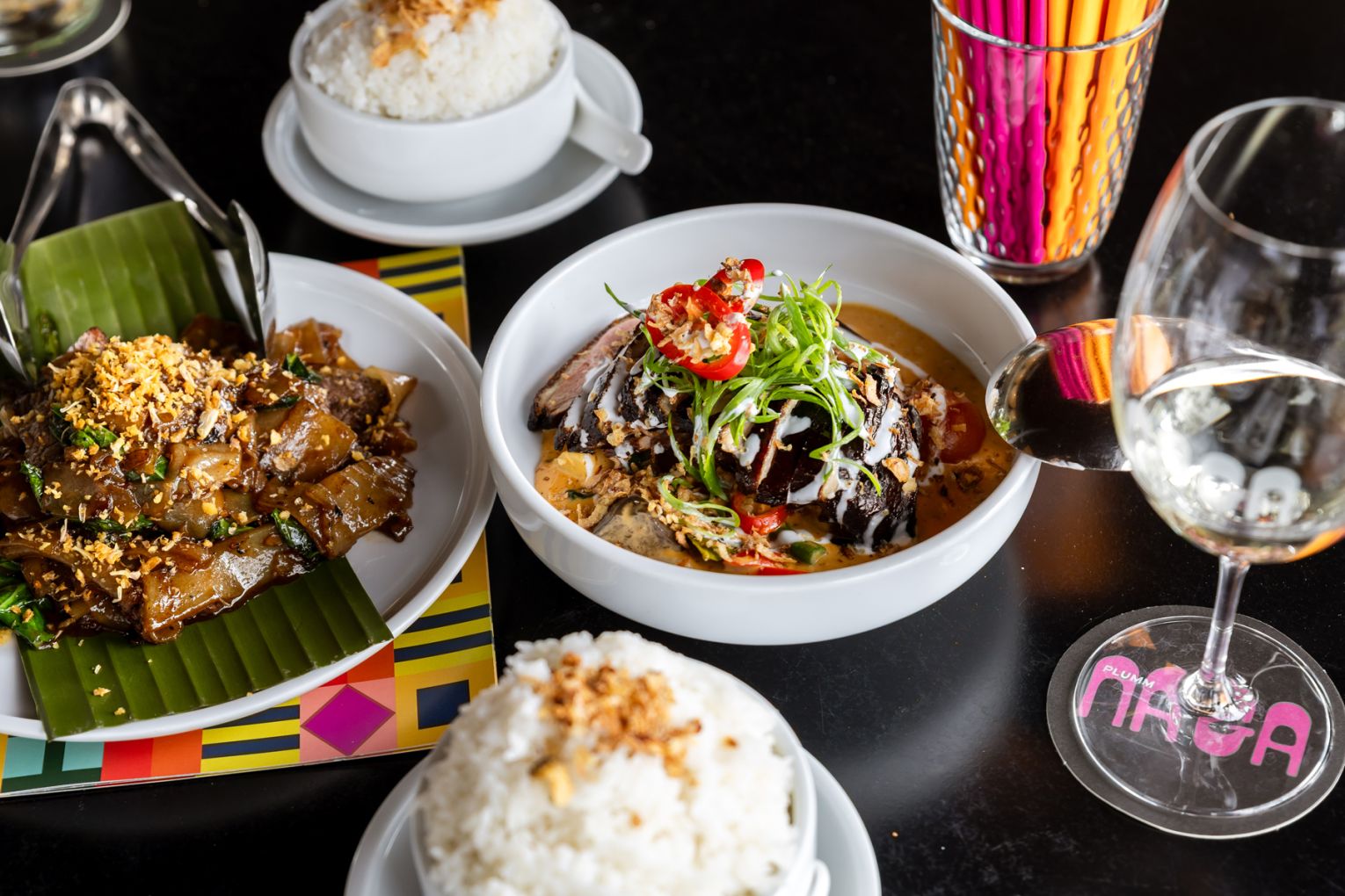 In 2020, Naga Thai burst onto the Brisbane dining scene as a vibrant escape from the gloom of lockdown, quickly earning a cult following with its bold design and flavour-packed menu. Though originally a short-term proposition, the restaurant’s spirit endured, and now, it has found a permanent home at River Quay – complete with its signature psychedelic flair and beloved dishes. Come and take a peek inside …