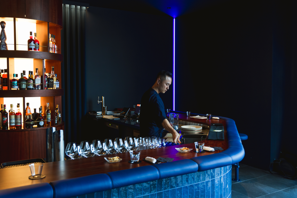 Just across the road from behind the orange door, is an equally elusive and unremarkable blue door, hiding a bespoke alcoholic experience. Behind the blue door, you can expect the same dedication to flavour, expertise and hospitality that can be found across the road, albeit in a much different environment. Finney Isles’ cool blue and black tones give the space a moodier feel, complete with elegant cocktails and a carefully cultivated library of spirits from gin to whisky. Barstool seating is also available, perfect for nursing a whisky from the talented staff’s recommendation.
