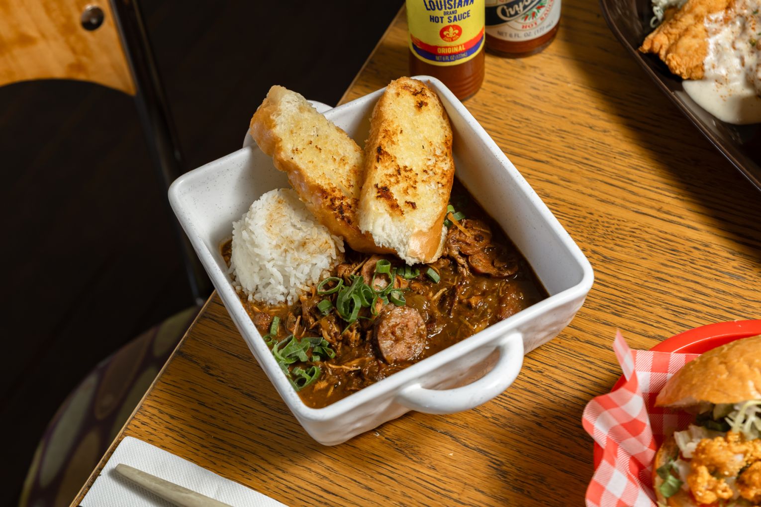 Creole Soul Kitchen’s top sellers – like chicken fried chicken, chicken and sausage gumbo, and crawfish etouffee (crawfish tails cooked in a blonde roux sauce and served over white rice) – sit among the bigger plates, while Po’ Boys have their own section on the menu.