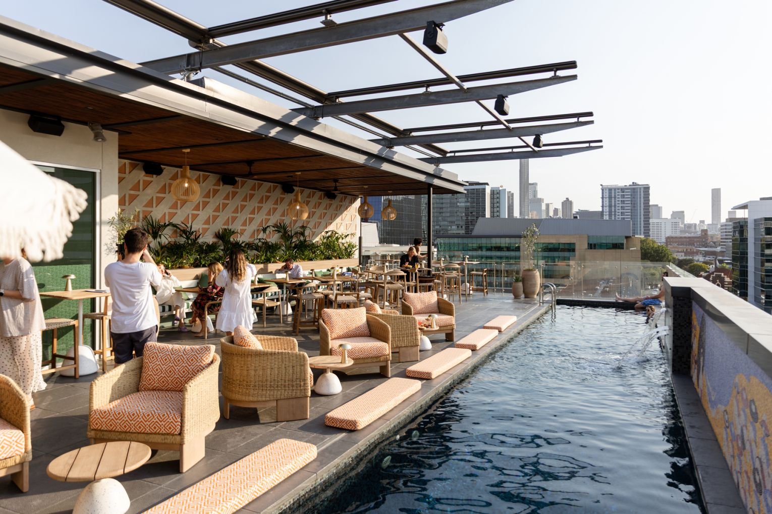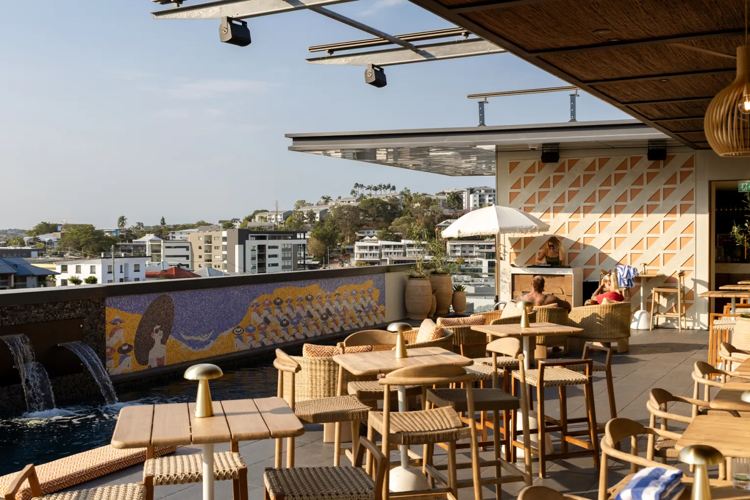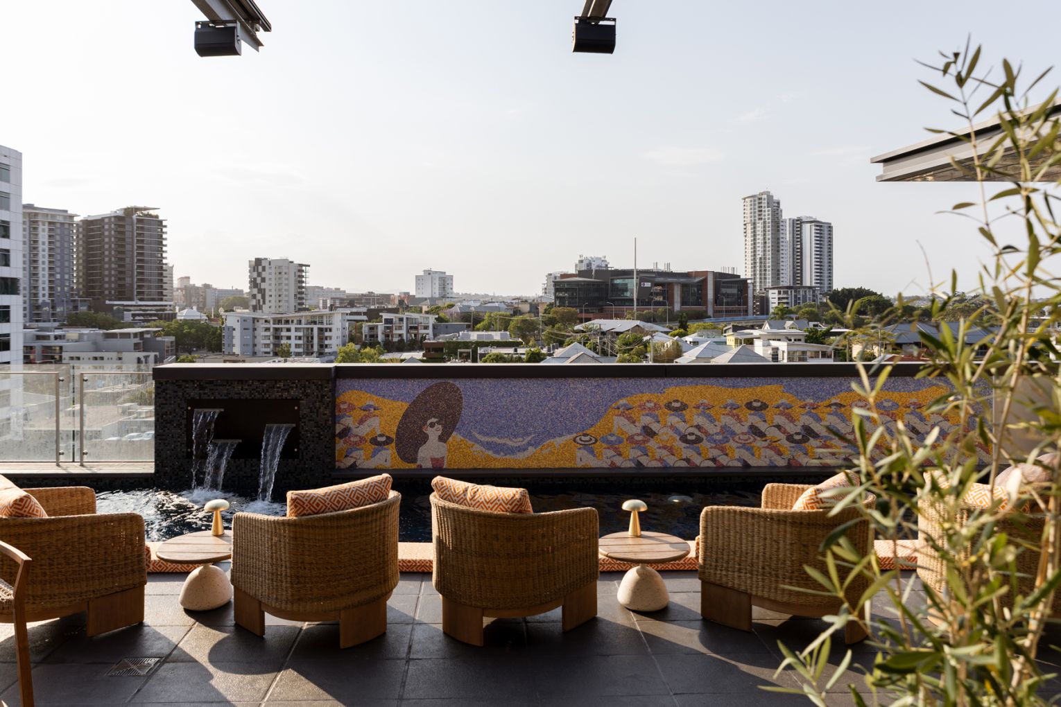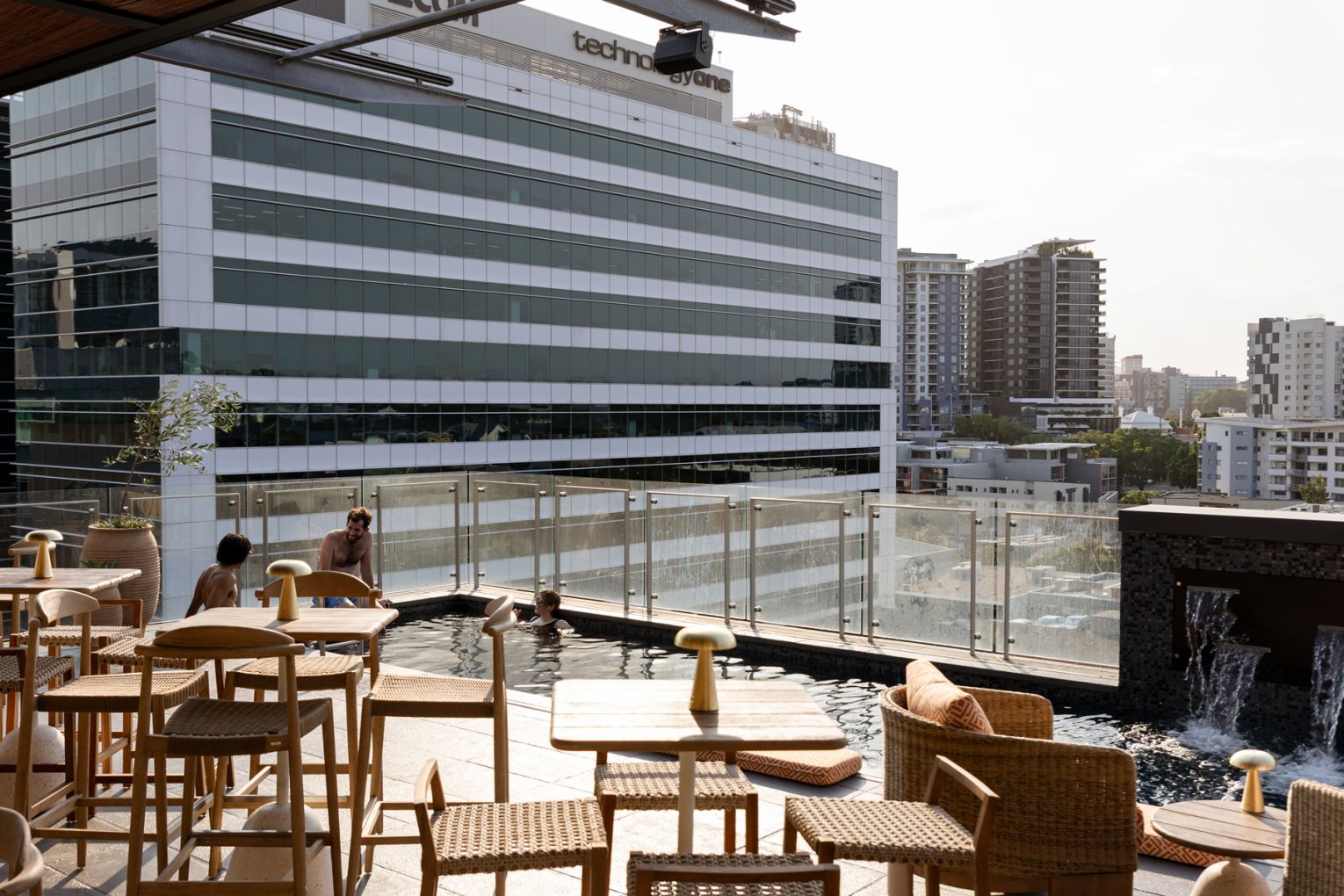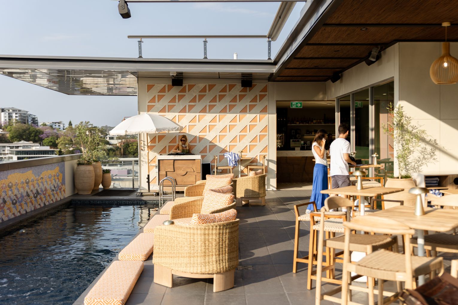 Over the past few months, Ovolo has been quietly transforming its rooftop recreational area – previously equipped with a gym, a sauna and a pool – into a Mediterranean-inspired oasis overlooking Fortitude Valley’s northern end. It’s a savvy move from the hotel operator. With summer looming and Brisbaneites looking to maximise golden afternoons and balmy evenings, the decision to transform Ovolo’s top-floor amenities into a relaxed, open-air sanctuary was a no-brainer.