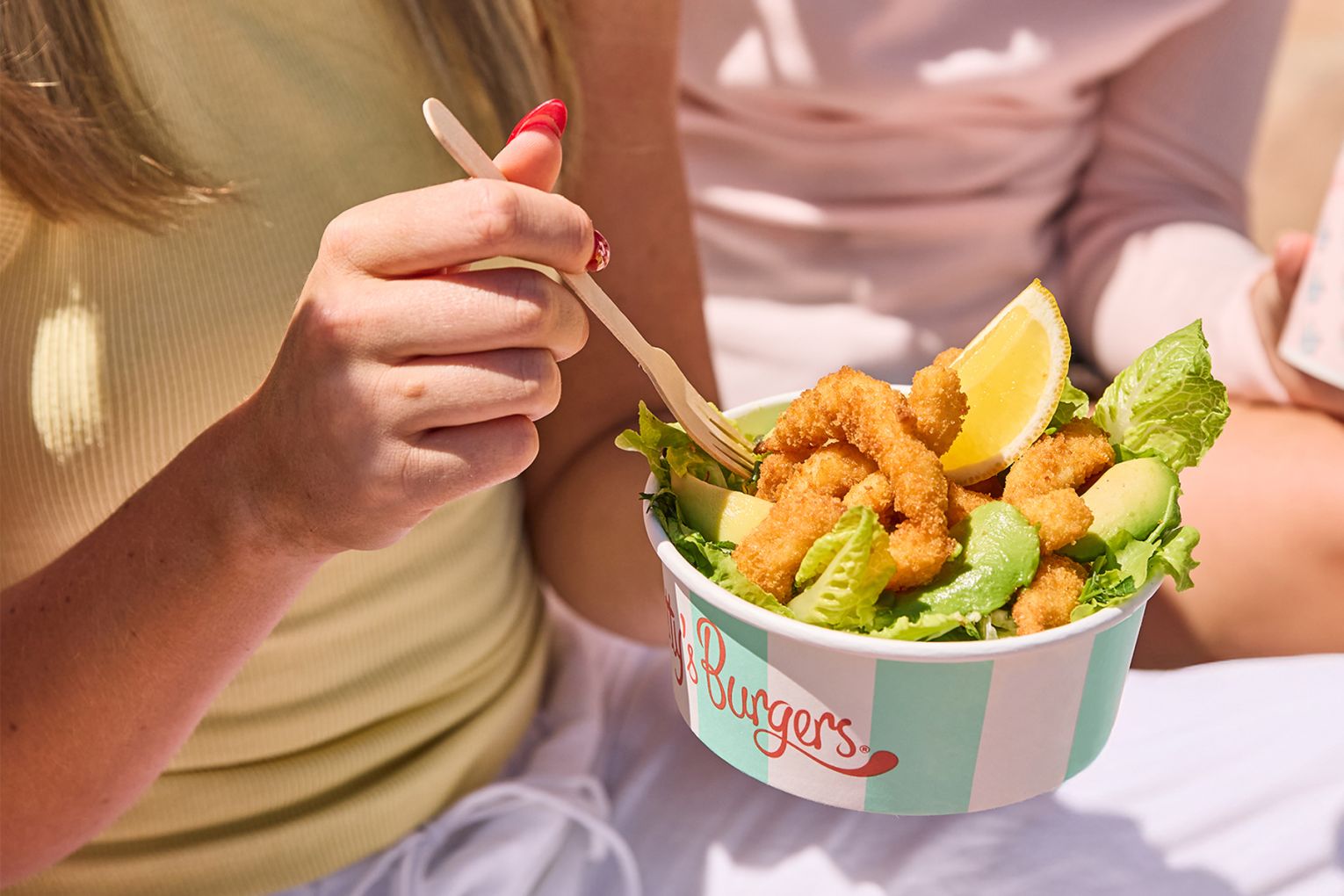 Betty’s Burgers’ delicious new arrival stars Australian-caught calamari, which is responsibly sourced and perfectly crumbed in golden panko for that all-important crunch. The tender and crispy calamari is layered over a bed of fresh lettuce, creamy avocado, cucumber, red onion and parsley, then finished with a trio of Betty’s sauces – zesty vinaigrette, garlic mayo and special sauce – creating a bowl that’s bright, balanced and highly addictive.
