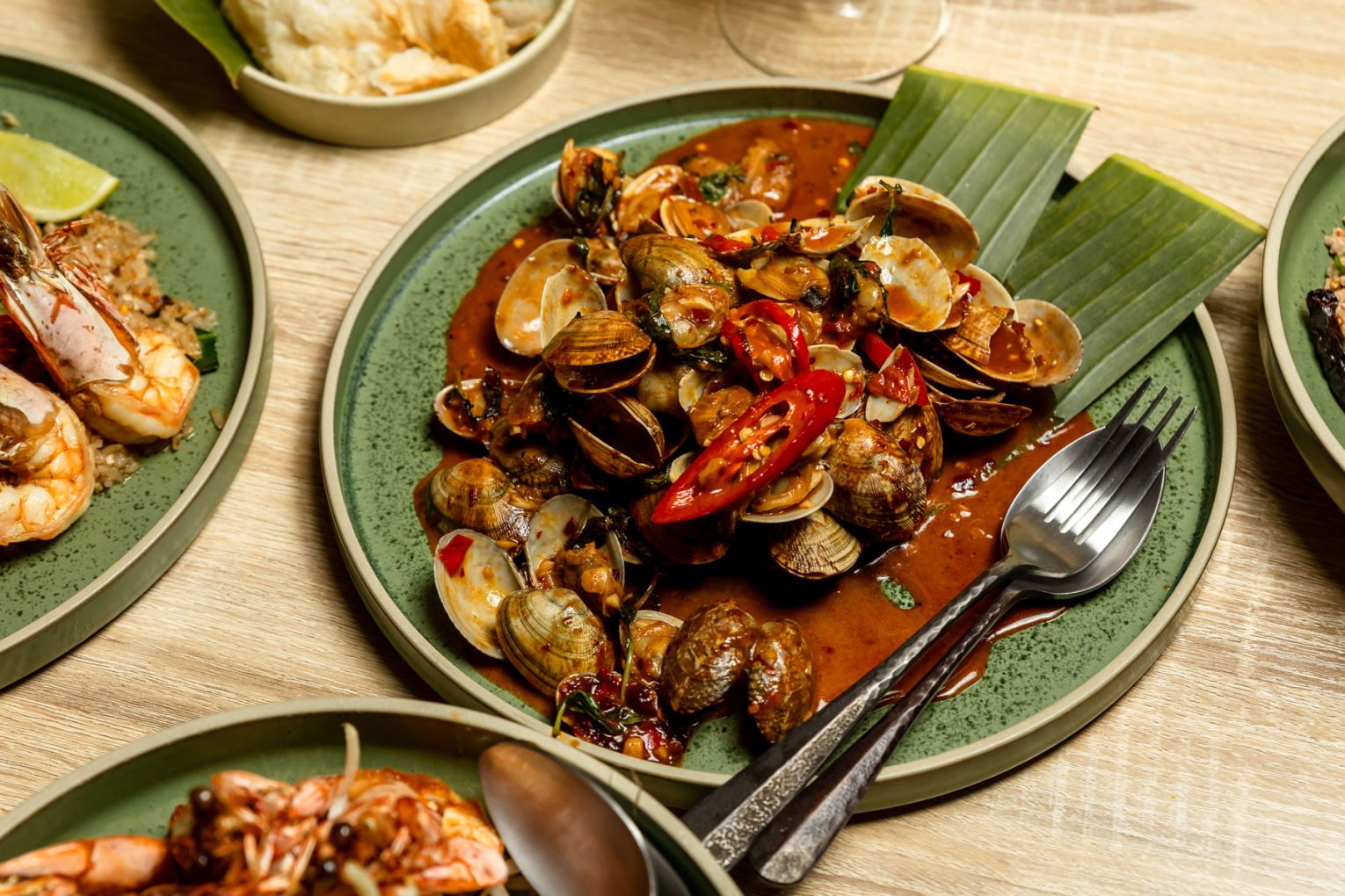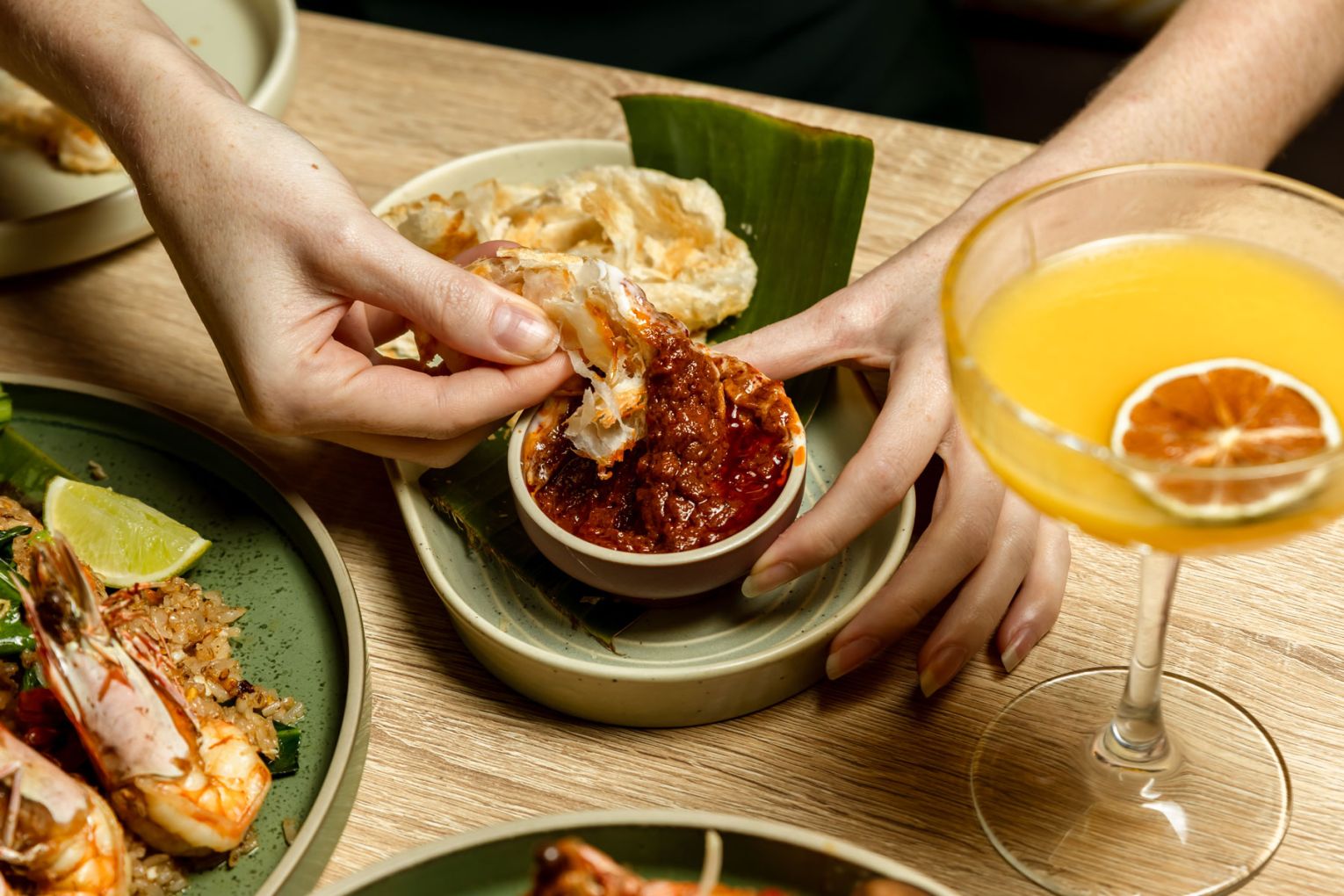 No matter the perch or occasion, Big Boy Bangkok’s menu has something to match your hunger level. The offering leads with little plates – think light bites like crispy fish cakes, flaky sheets of roti served with satay dipping sauce, free-range pork and pineapple skewers, and grilled king prawns with kaffir-lime butter.