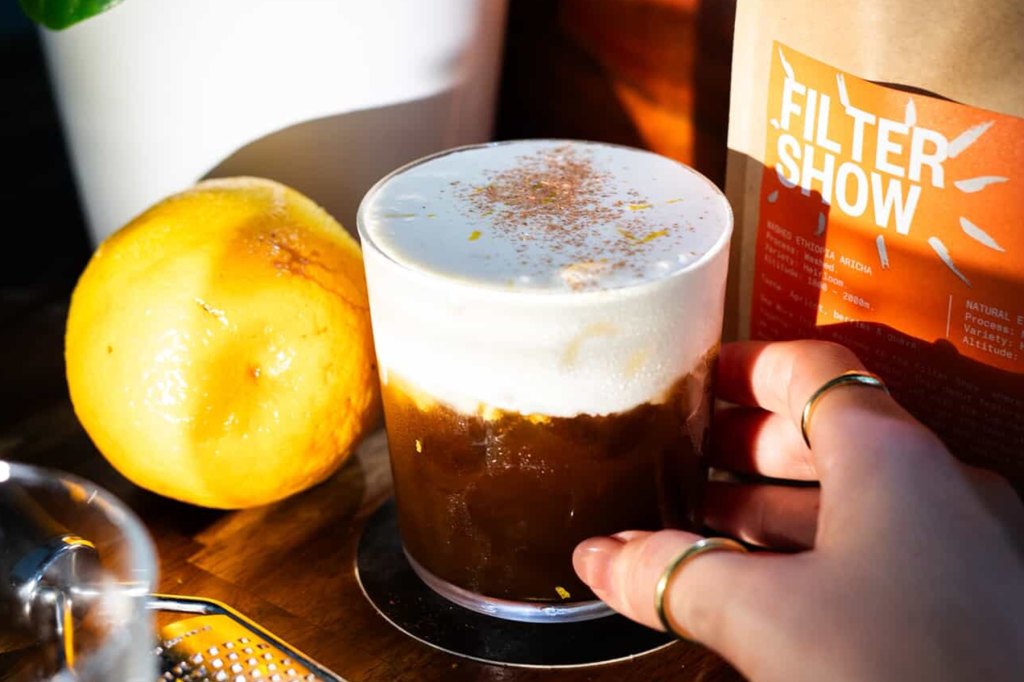 Over in Spring Hill, ‘Feind Coffee is whipping up Mont Blancs using Ethiopia Bookkisa Natural roast for a rich cold brew infused with notes of stewed plum and Lindt dark chocolate. Topped with creamy cold foam and dusted with freshly zested orange and chocolate shavings, ‘Feind’s Mont Blanc is richly balanced and endlessly refreshing.