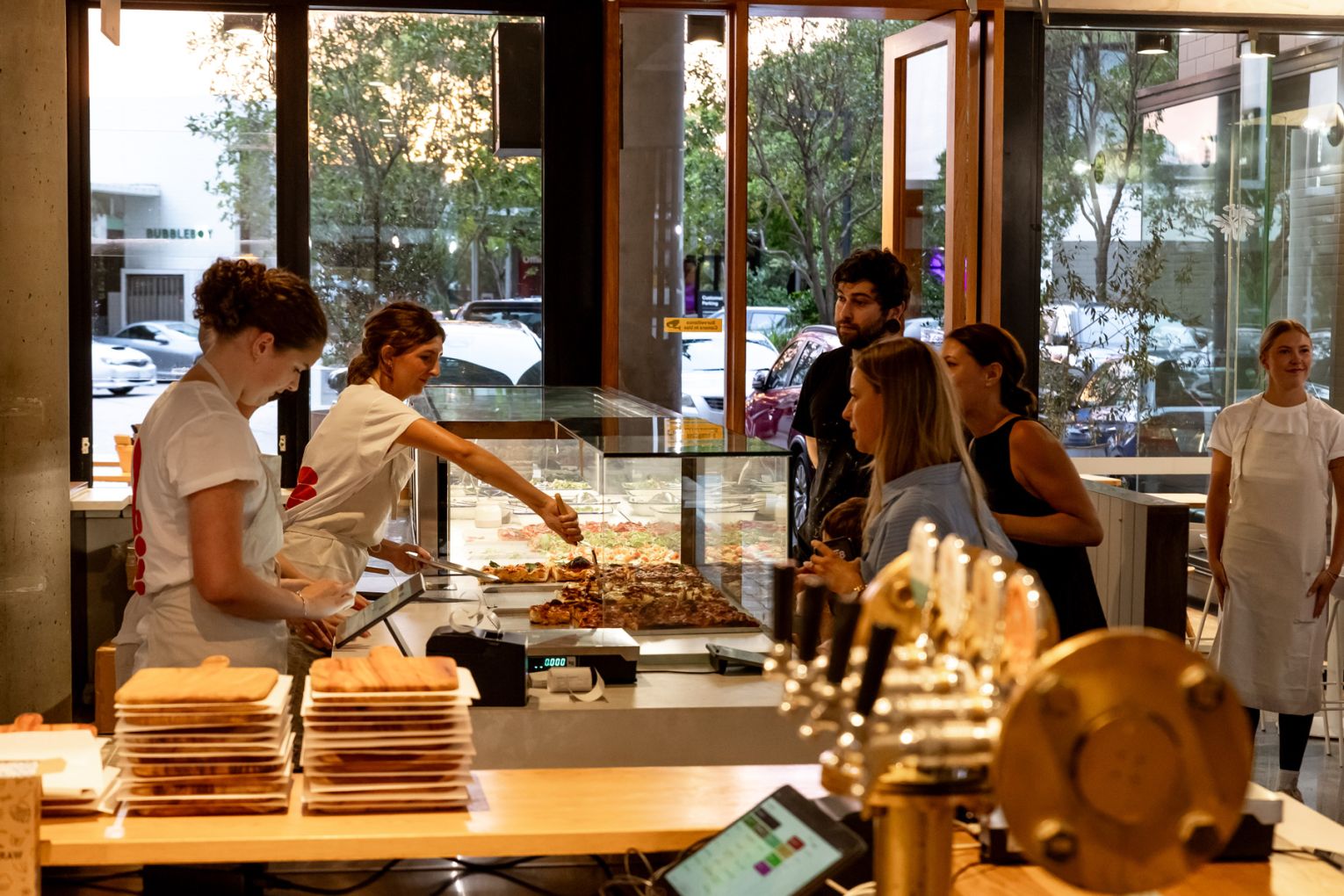 It all starts with the dough – a recipe months in the making. A high-hydration mix using Australian-milled Mauri 00 flour is fermented for 72 hours before being baked in steel trays. The result is a crisp yet sturdy base that holds its toppings without sagging, while remaining easier on the stomach.