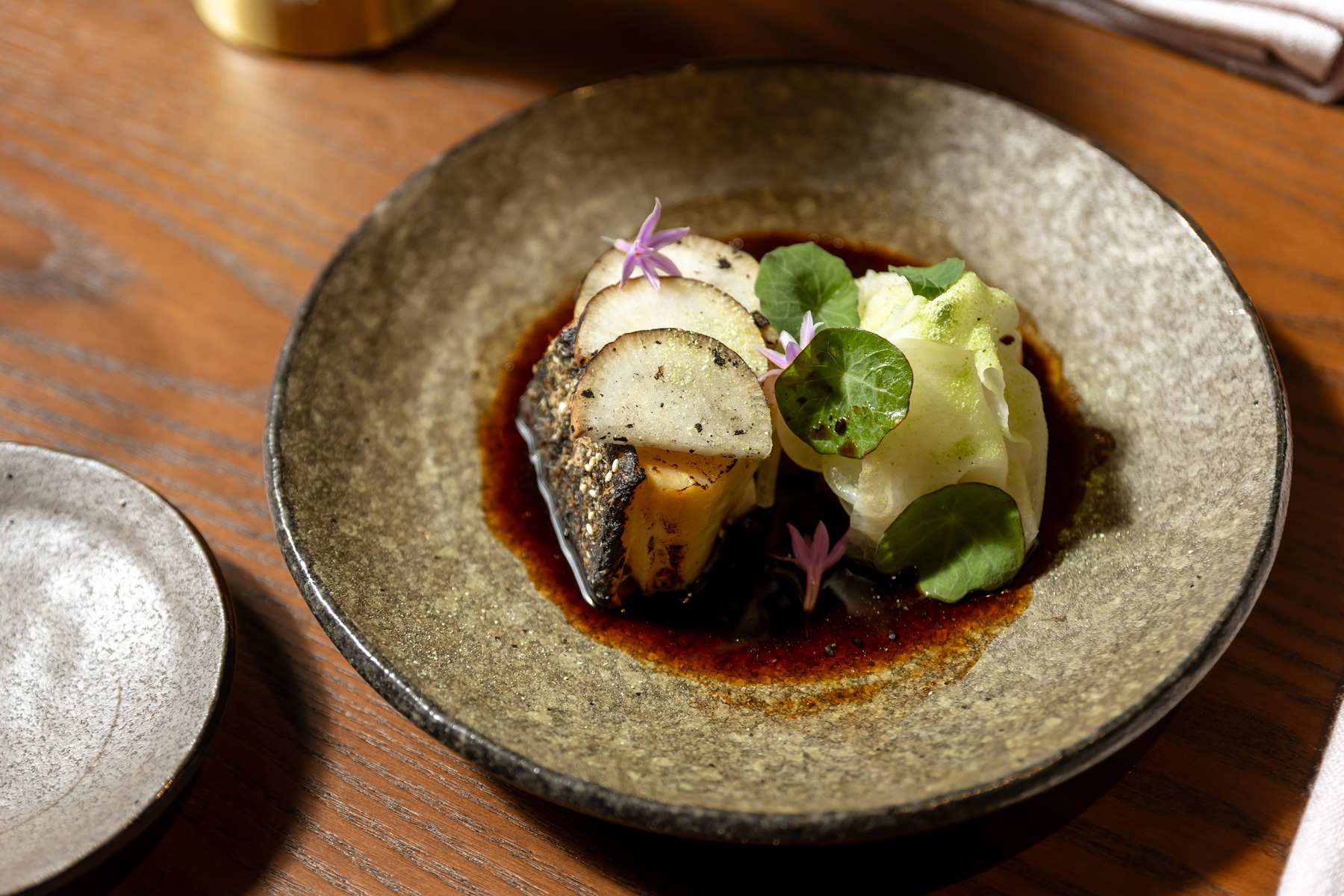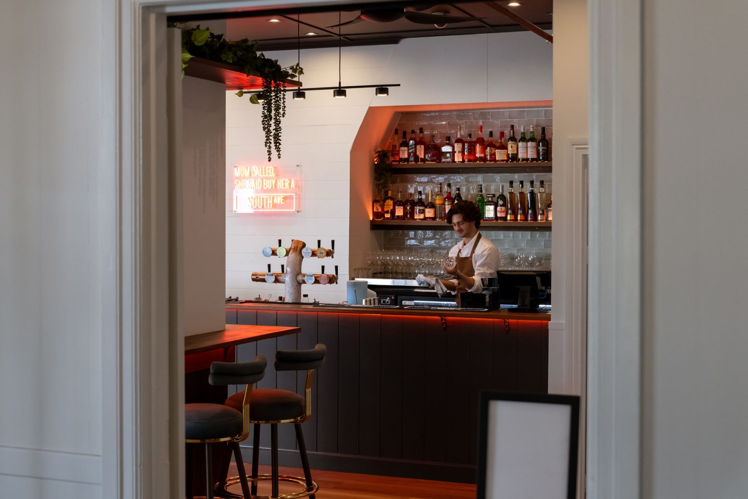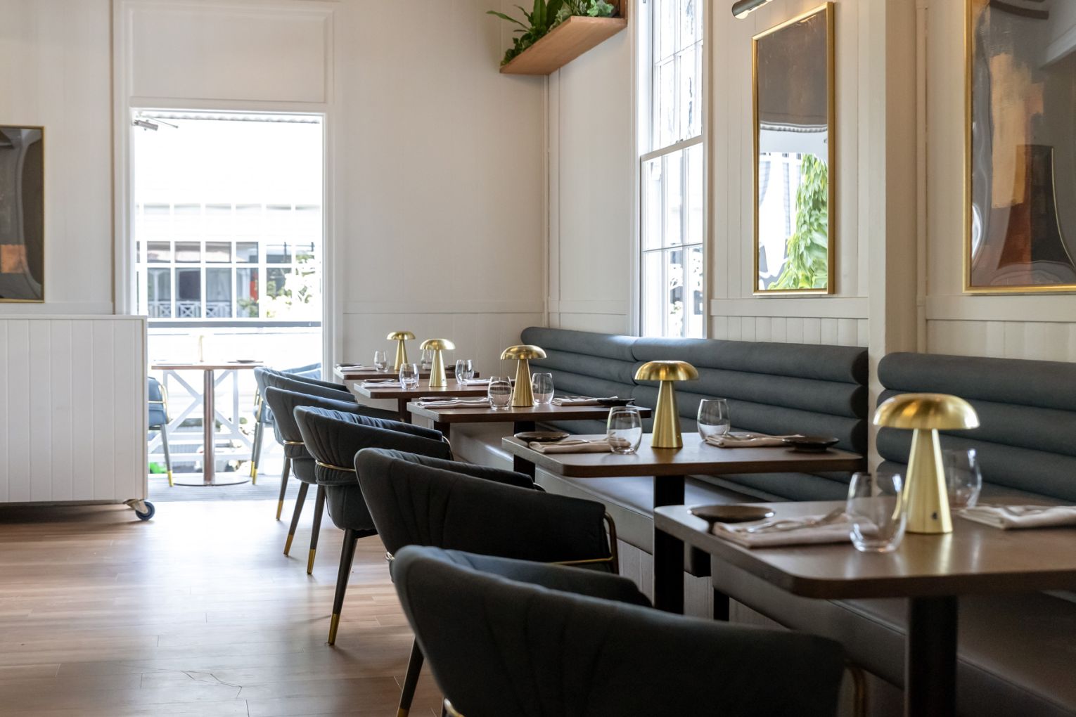 Next door, the venue’s main dining room has been given a makeover, with cushy booths and a colour scheme of cream and muted blues creating an understated yet elegant place to dine at leisure. Here, it’s all about flame-licked fare, with head chef Kyran Henry (previously of City Winery) curating an offering that bridges the gap between casual dining and fine dining.
