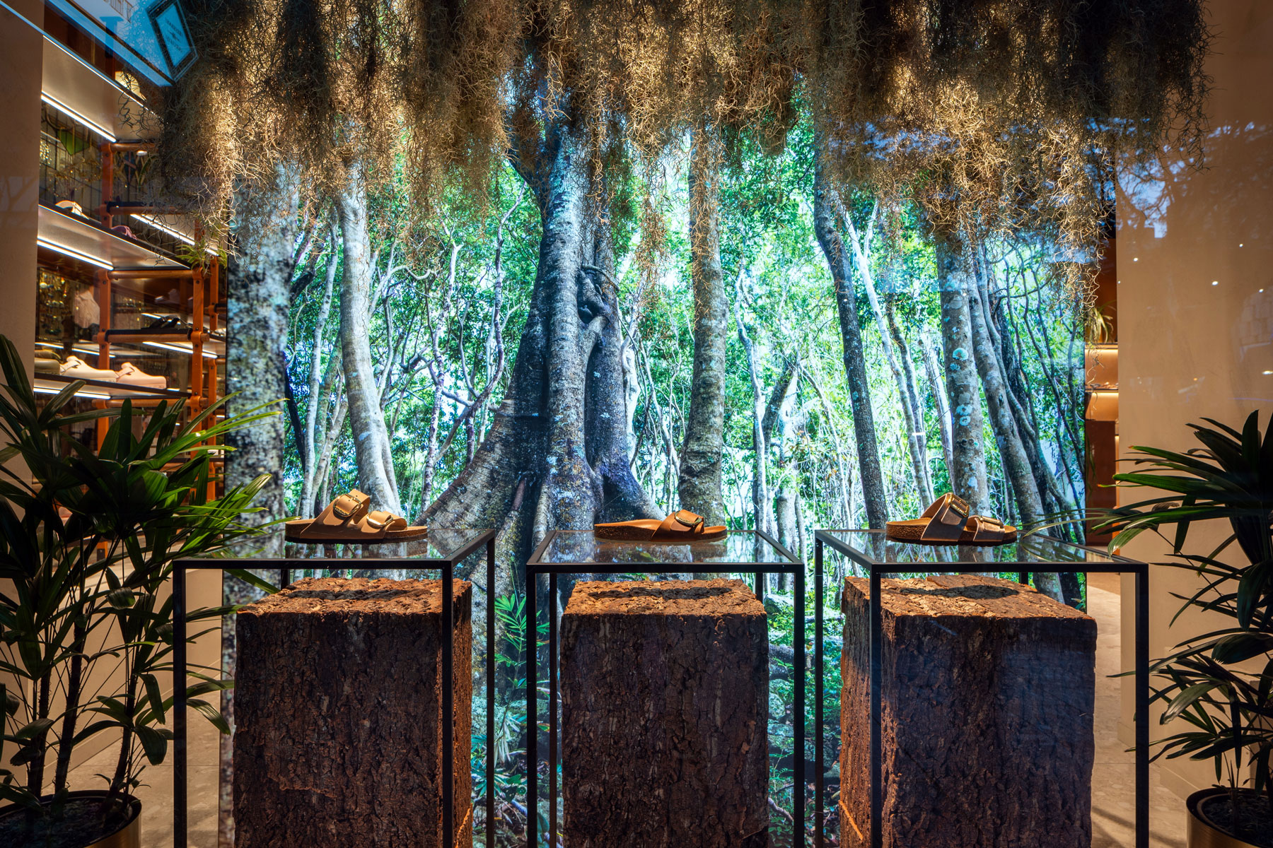 The German-born footwear label Birkenstock has expanded its reach with a brand-new store landing in the heritage-listed Brisbane Arcade on Adelaide Street. Shoppers are invited to experience walking as nature intended, with a custom light box window display featuring imagery of Mossman Gorge in the Daintree Rainforest. The interior pays homage to signature Birkenstock materials, with cork, jute carpets and leather details complemented by Spanish moss drapes and plinths scattered throughout. Once inside, customers will discover an extensive selection of Birkenstock classics such as the Arizona, Boston and Madrid styles, alongside seasonal collections and the Care Essentials range. The Birkenstock Brisbane store is now open and more information can be discovered here.