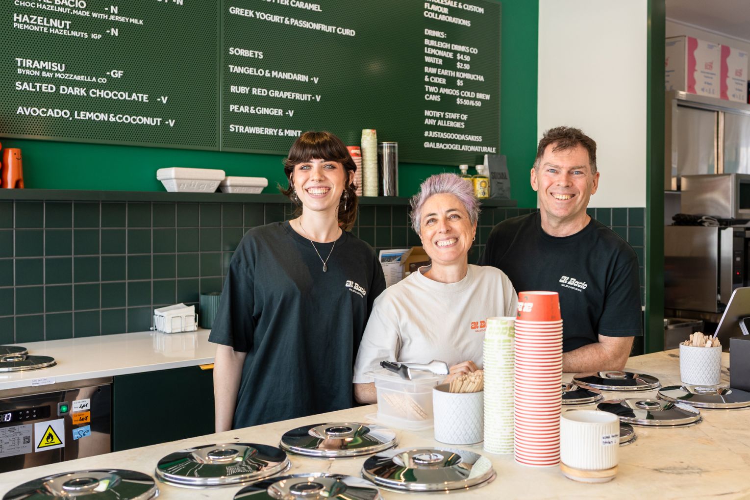 Al Bacio Gelato Naturale is inspired by Italy’s artisanal gelaterias. The venue is a labour of love for husband-and-wife duo Bek and Craig Heininger alongside their daughter Jaime, who handcraft every batch on-site using traditional methods and natural ingredients – no shortcuts, just honest, flavour-first gelato made with care. The line-up changes with the seasons, but early favourites like strawberry and mint sorbet, mascarpone with honey and walnut, pear and ginger, and an avocado, lemon and coconut creation have already developed a loyal following. With its striking palette, coastal charm and commitment to authenticity, Al Bacio brings a little taste of Italy to the lower Gold Coast Highway – one perfectly creamy scoop at a time.