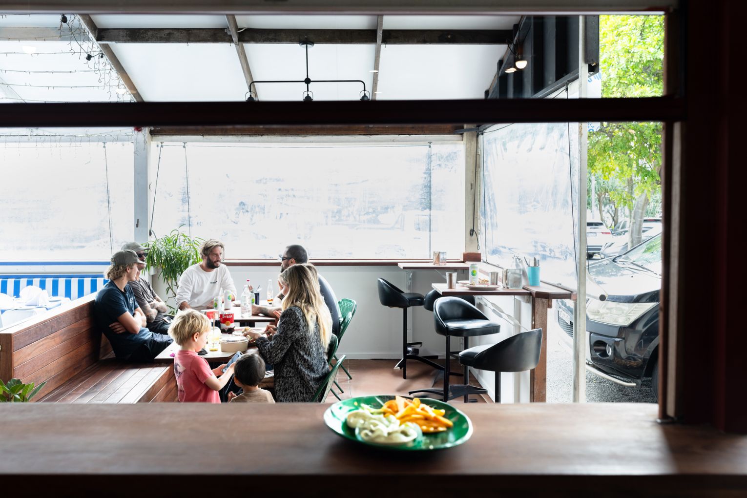 The vibe is warm and welcoming, with 70s-inspired timber panelling, a handful of indoor tables, a perch bench for takeaways, and a breezy alfresco area.