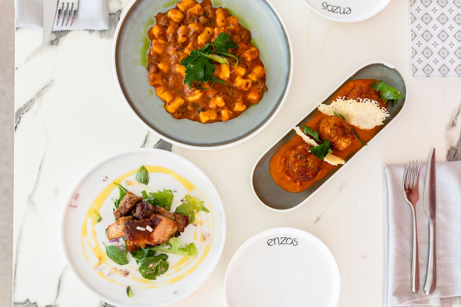 Enzo’s Cucina has brought its Australian Italian flair to Carrara, marking the fourth Gold Coast venue and eighteenth across Australia for chef and founder Enzo Marturano. Blending his Southern Italian heritage with the flavours Australians love, the familiar menu features hand-rolled gnocchi and creamy carbonara alongside inventive specials like the arancini bomba and dishes elevated by a house-made master stock. The space seats 160 diners indoors and out, with rustic styling and the rare convenience of plentiful parking.